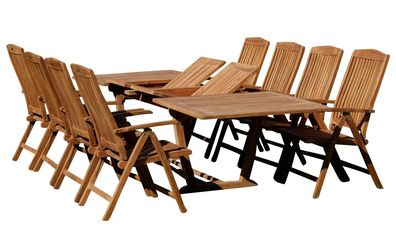 TEAK SET: Gartengarnitur Tisch 200/250/300cm x 100cm + 8 Sessel Serie JAV-Tobago