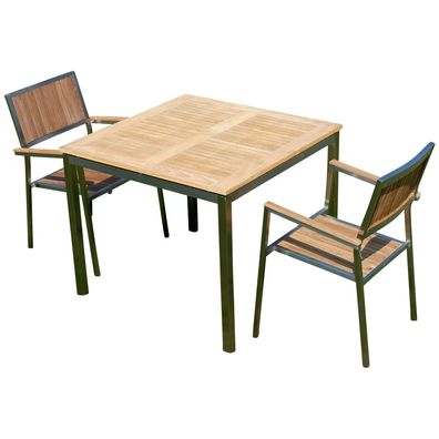 Gartengarnitur Edelstahl Teak Set Tisch 90x90 cm + 2 Teak Sessel Serie KUBA