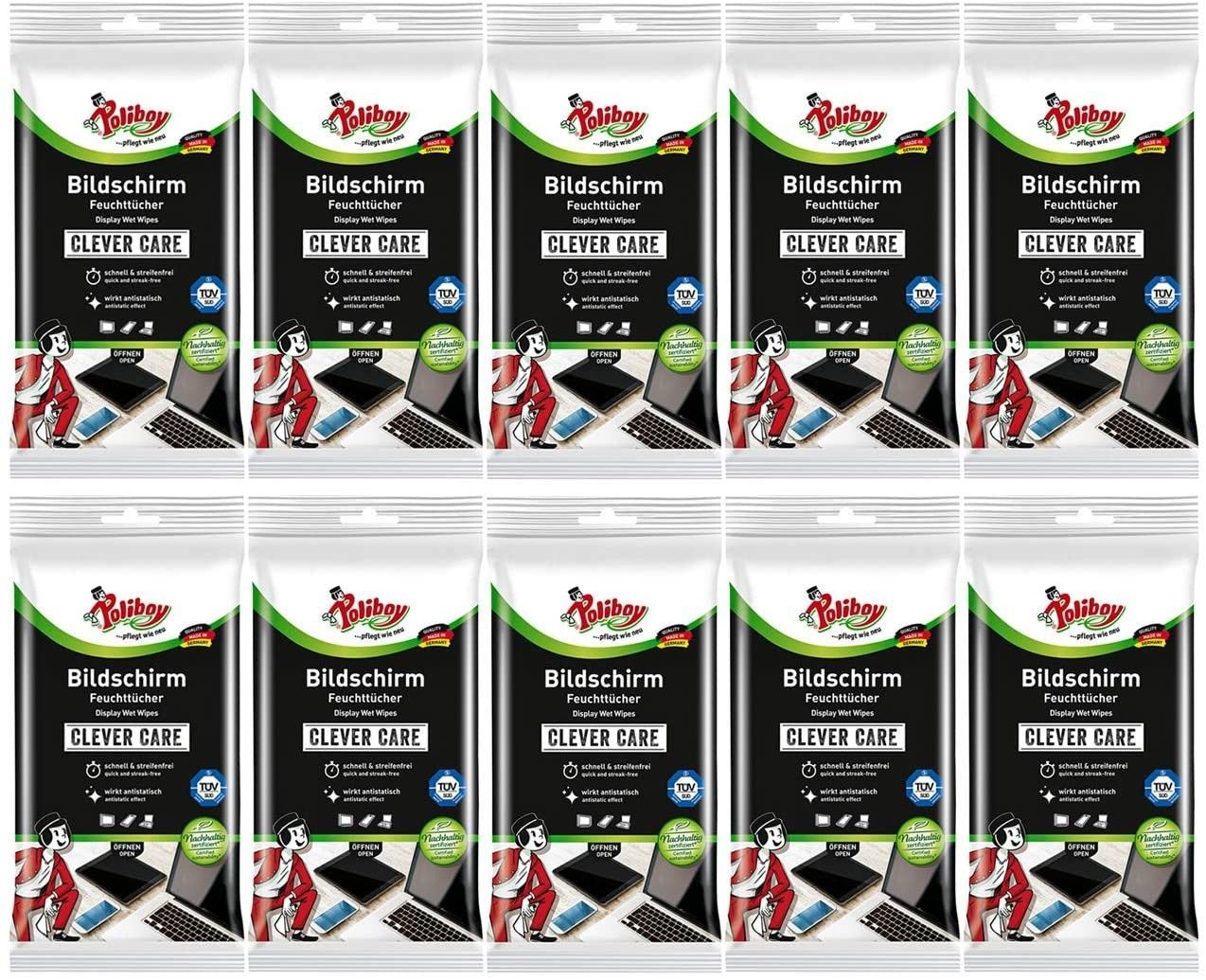 Poliboy - Bildschirm Feuchttücher - 10er Pack - 10x30 Stück - Made in Germany