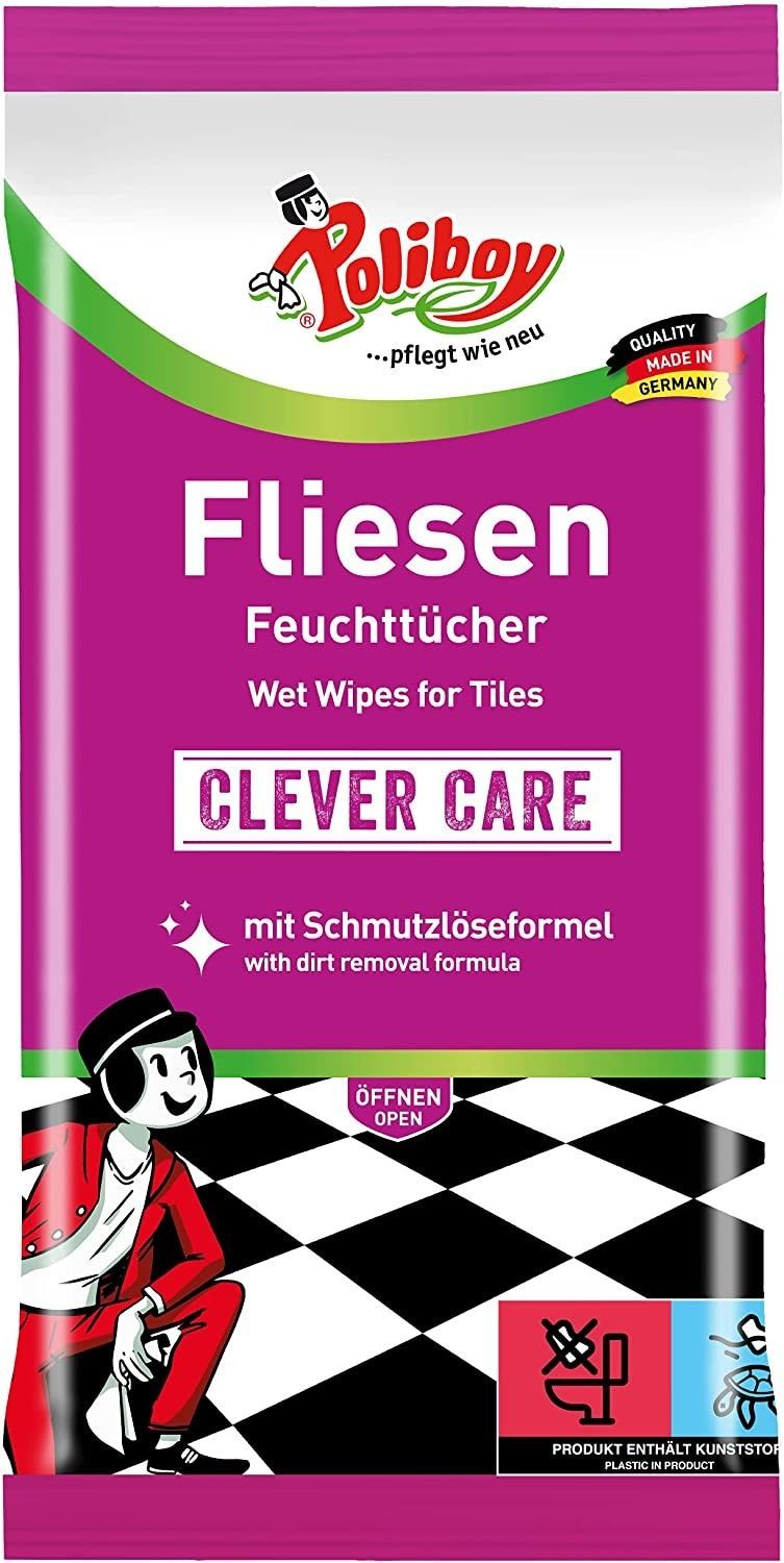 Poliboy - Fliesen Feuchttücher - 1er Pack - 15 Tücher - Made in Germany