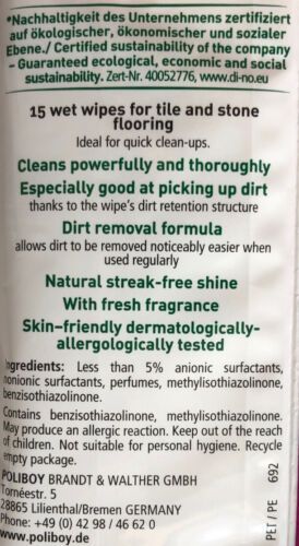 Poliboy Fliesen - Feuchttücher 22x30 cm - 15 Tücher/ Wises
