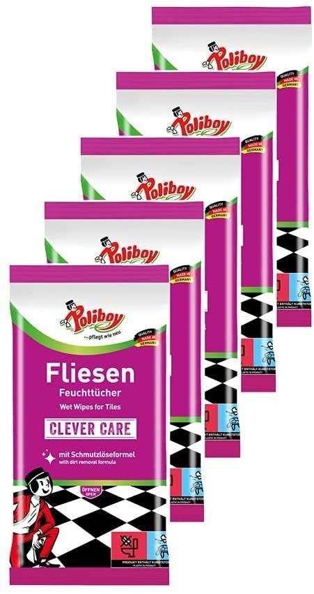 Poliboy - Fliesen Feuchttücher - 5er Pack - 5x15 Tücher - Made in Germany