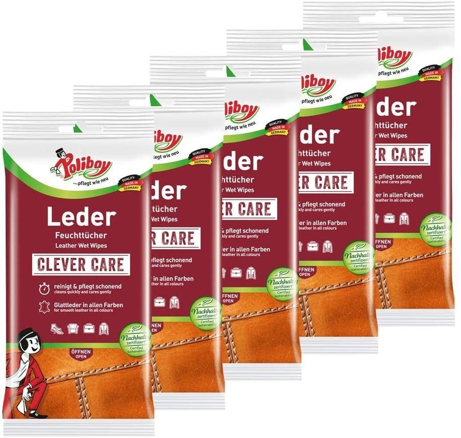 Poliboy - Leder Feuchttücher - 5er Pack - 5x20 Tücher - Made in Germany