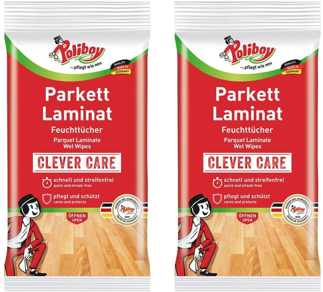 Poliboy - Parkett & Laminat Feuchttücher - 2er Pack - 2x15 Tücher - Made in Germany