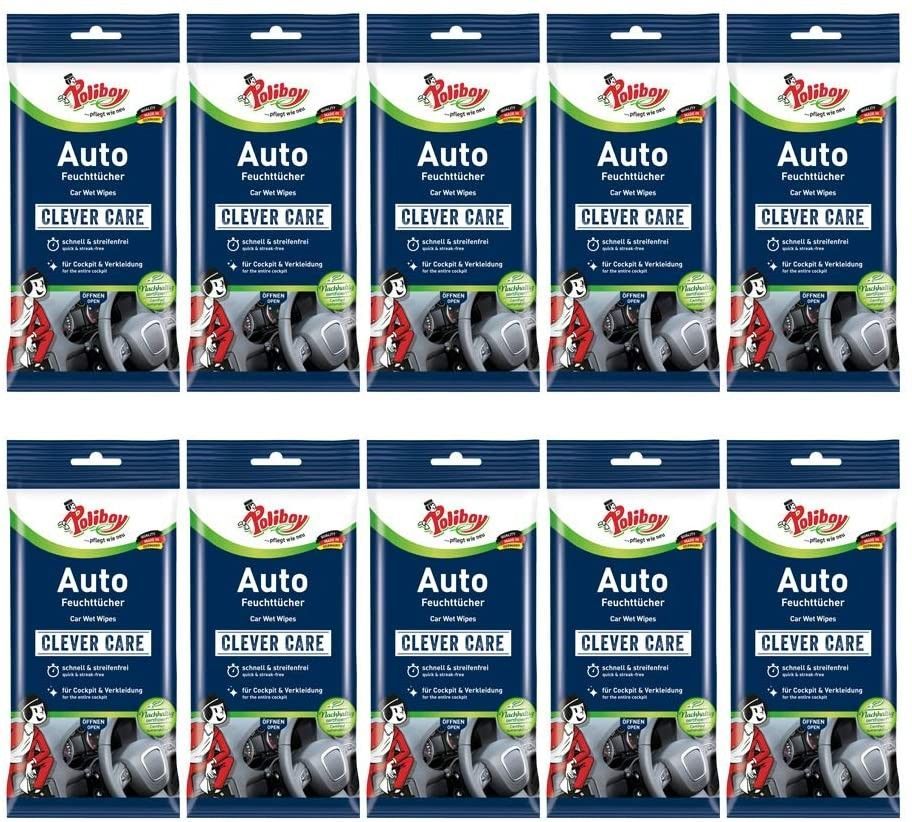 Poliboy - Staubmeister Auto Feuchttücher - 10er Pack - 10x20 Stück - Made in Germany