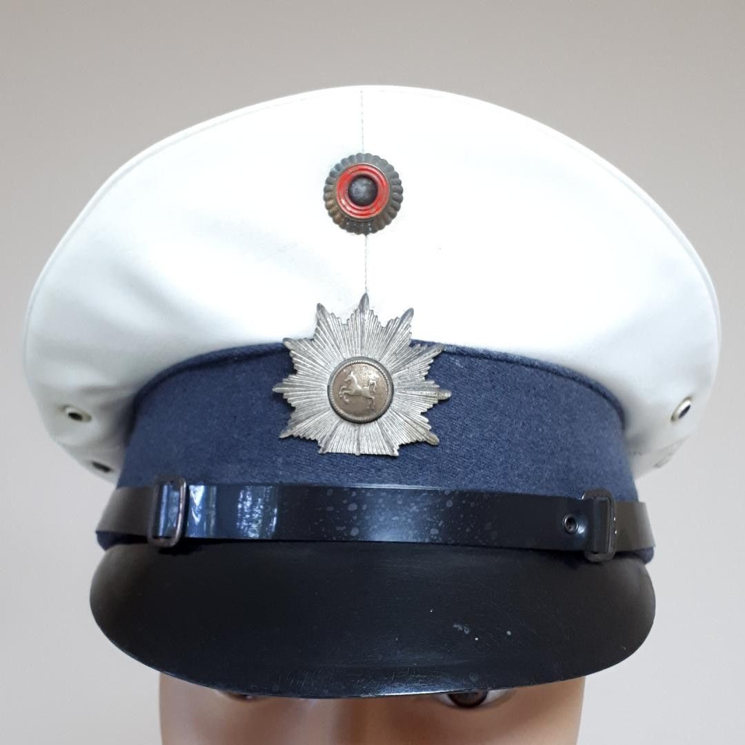 Polizei Niedersachsen Schirmmütze Gr.54 K.W.1 * Größe:54 Zustand: gut - gebraucht mit kleinen Gebrauchsspuren (Kunstleder weist einige Verschmutzungen auf, Schweißband ist stellenweise eingerissen) Abbildung ist beispielhaft, Abweichungen können vorkommen!