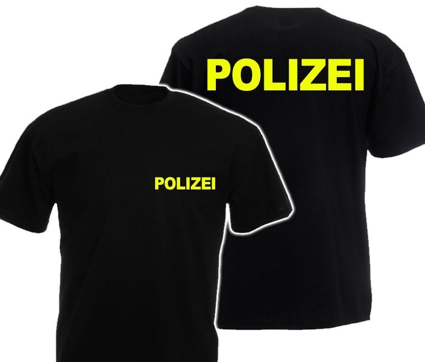 - POLIZEI - T-Shirt Beschreibung: Druck: Hochwertiger, Extrem langlebiger Flexdruck hergestellt in Deutschland! Waschbar bis 90 Grad ohne das die Farben verblassen! Made in Germany!!! 100% Baumwolle, Belcoro(R) Garn Neuer besserer Sitz, länger geschnitten Perfekte Passform mit Seitennähten Baumwolle