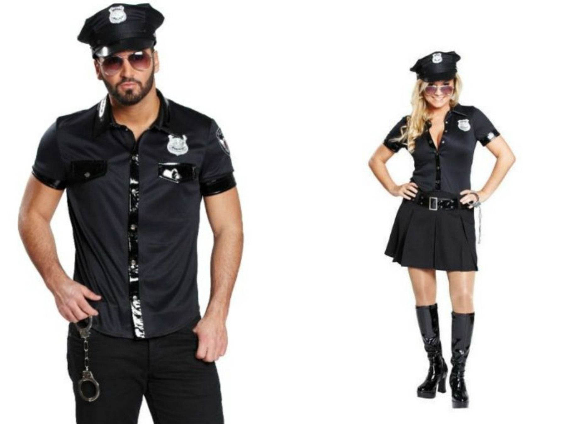 Polizeikostüm Damen Herren schwarz Police Polizist Kleid o. Hemd Karneval