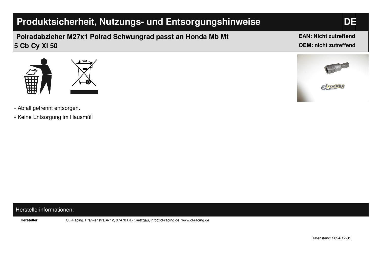 Polradabzieher M27x1 Abzieher Schwungrad passt an Yamaha Sr 250 500 Xt 250