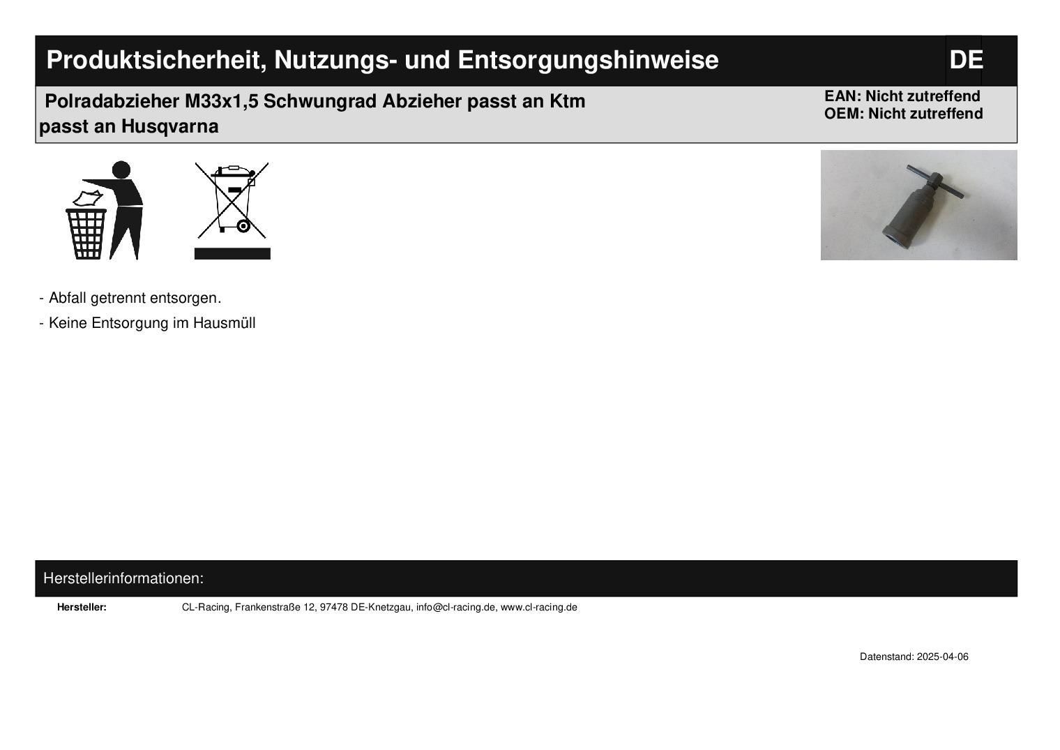 Polradabzieher M33x1,5 Schwungrad flywheel puller passt an Ktm Dule Egs Exc Sc