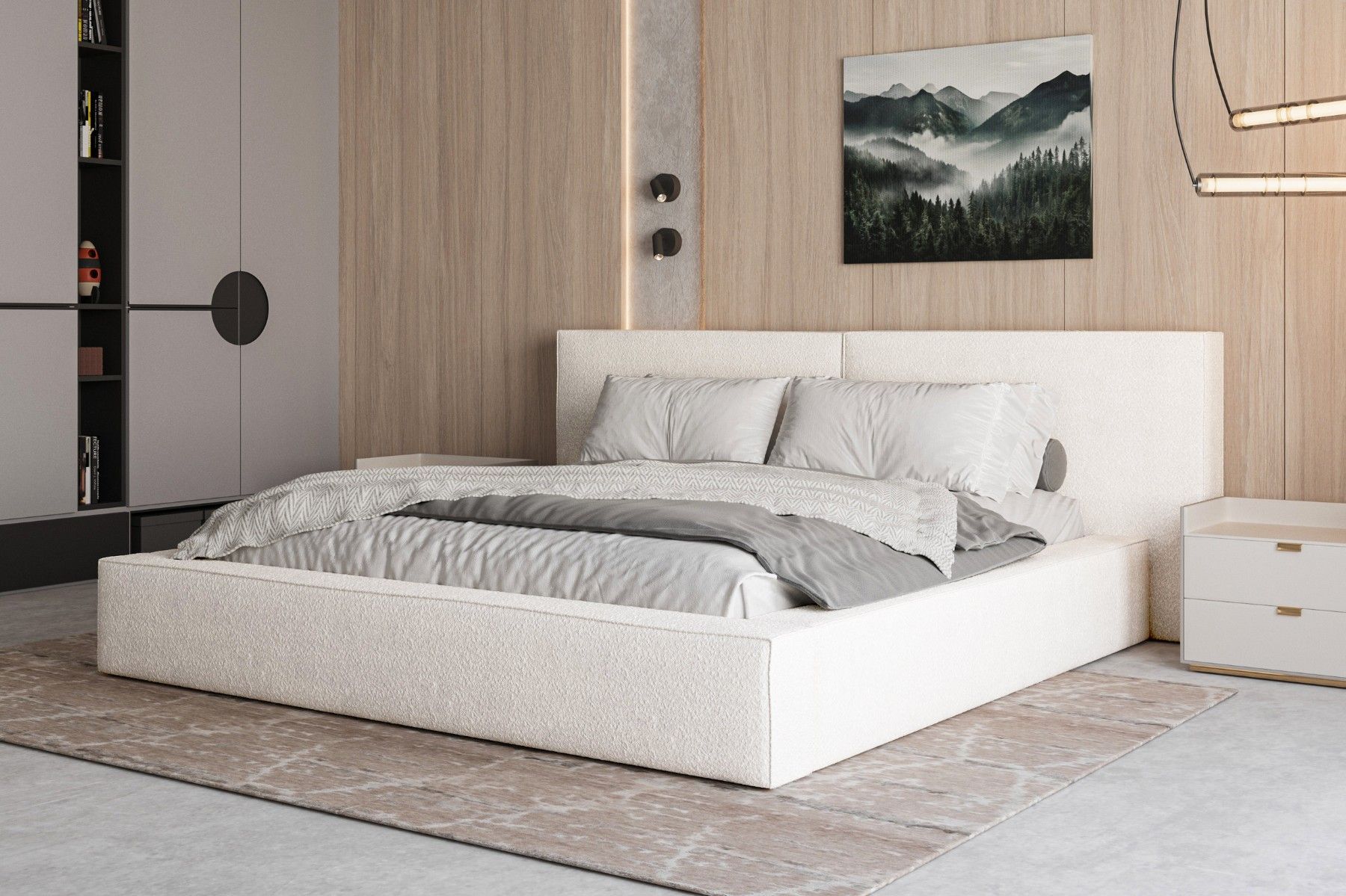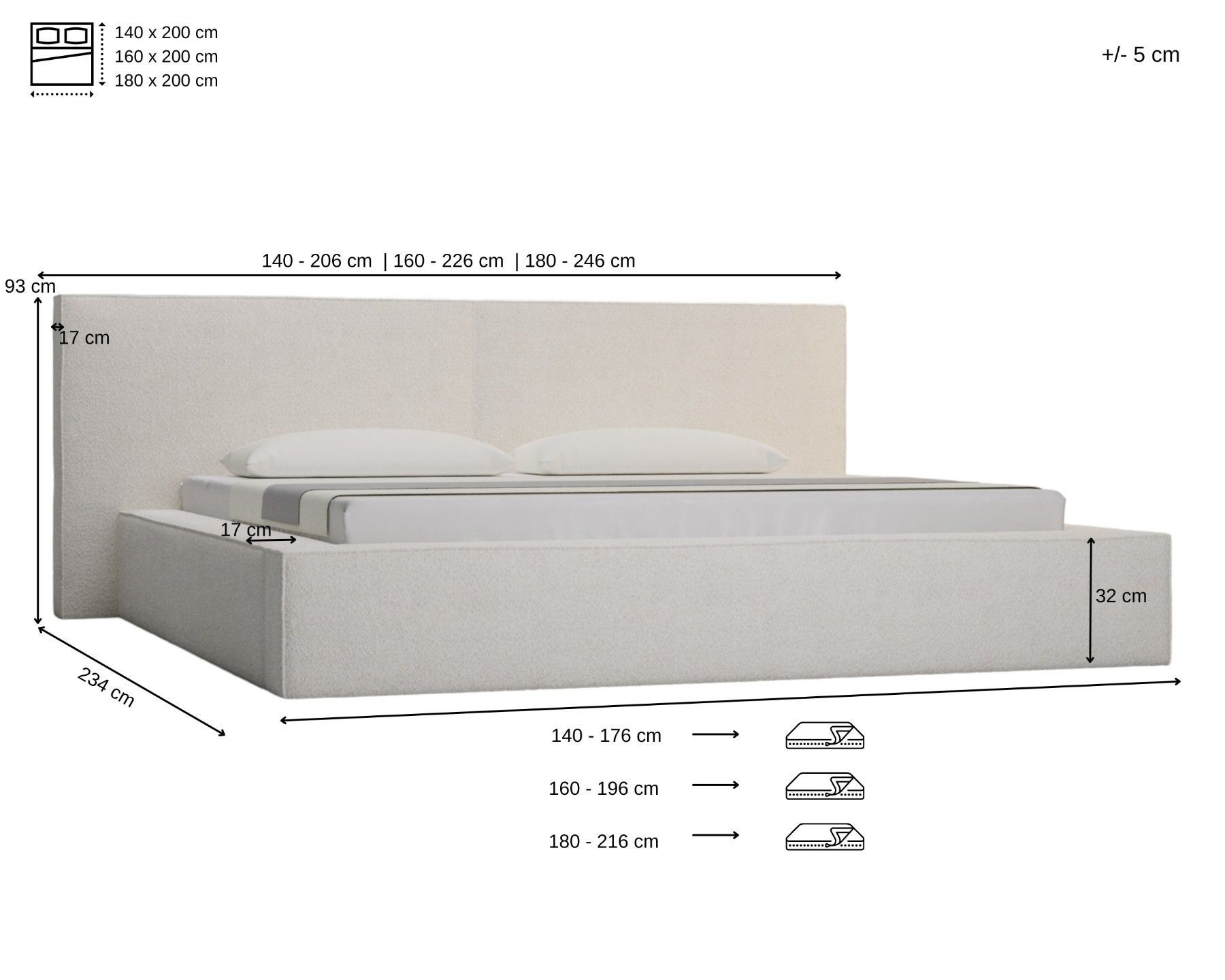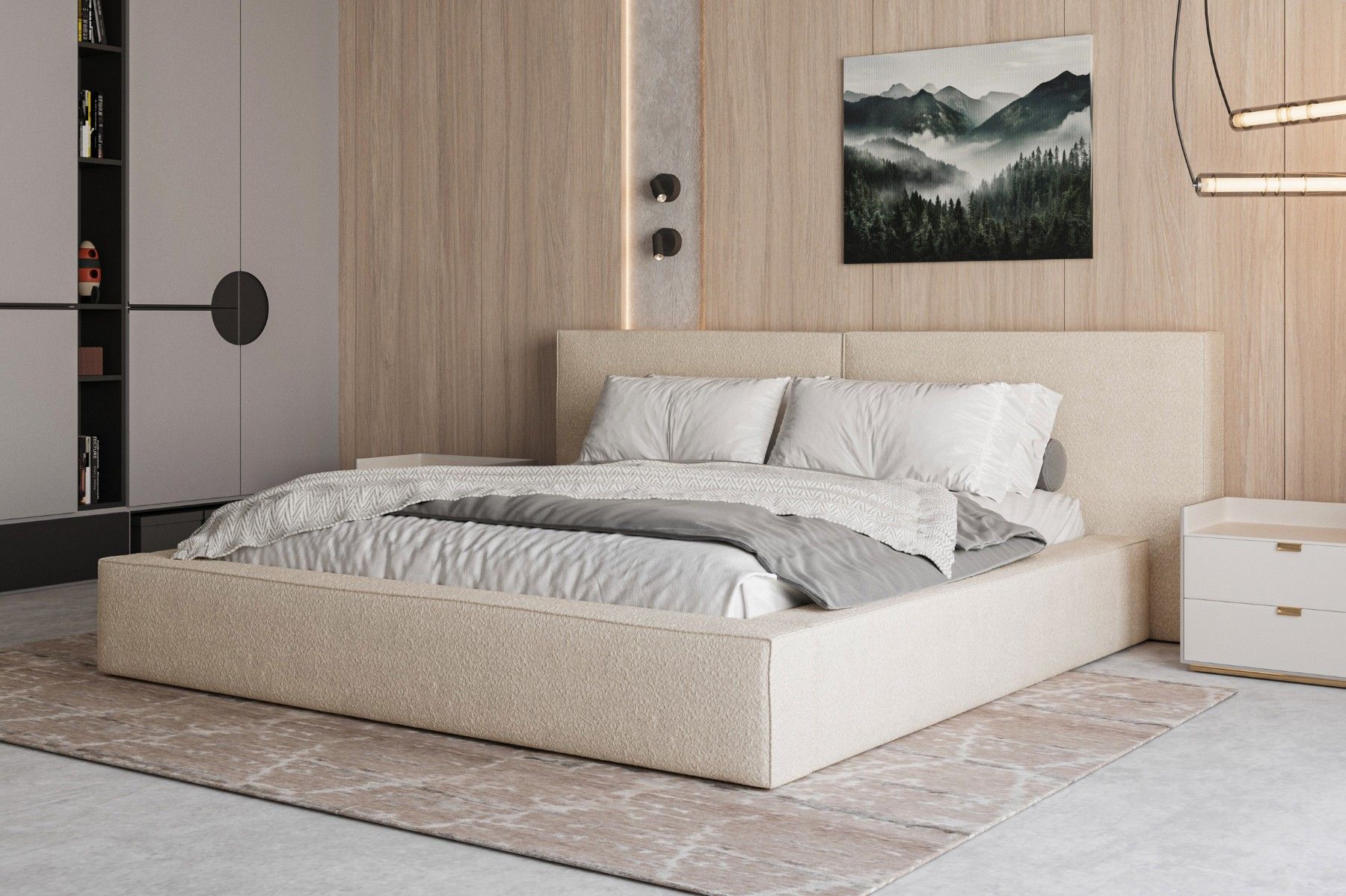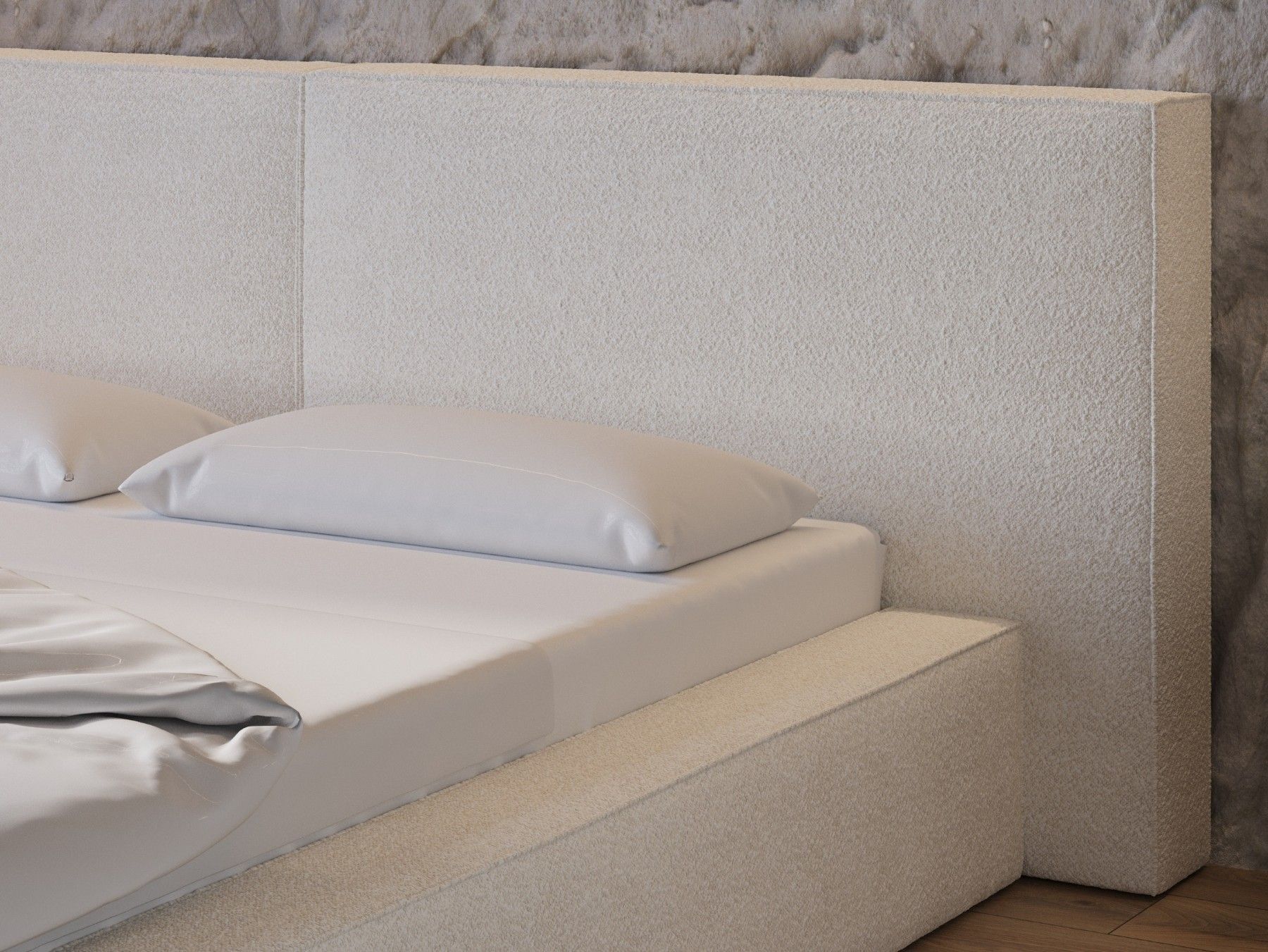 Polsterbett 06 Beige 140x200 cm aus bouclé Doppelbett mit Kopfstütze