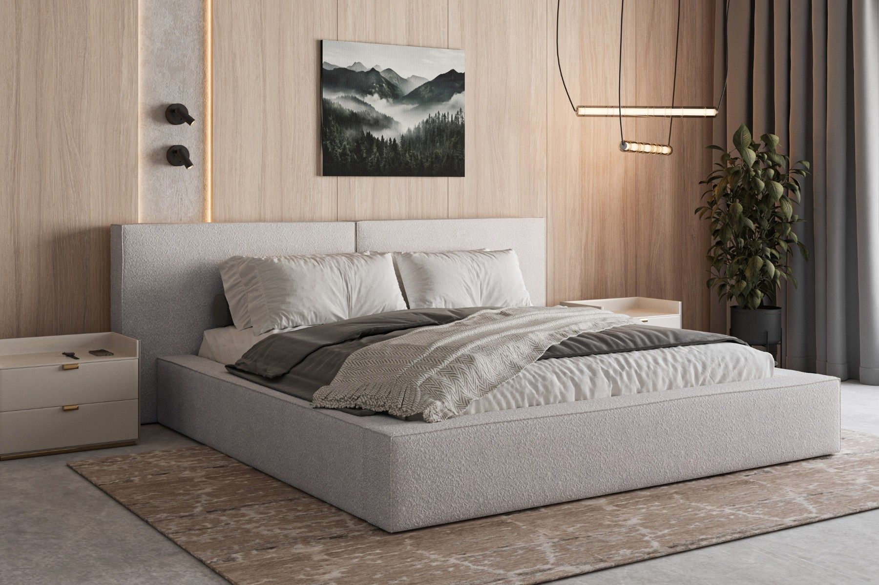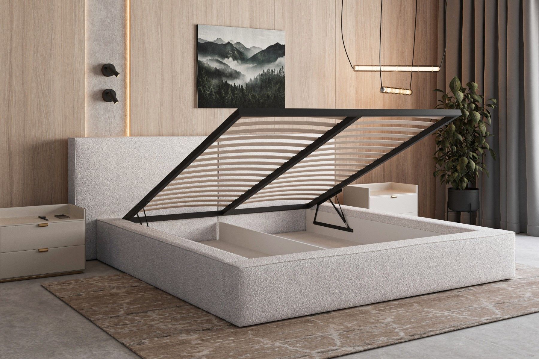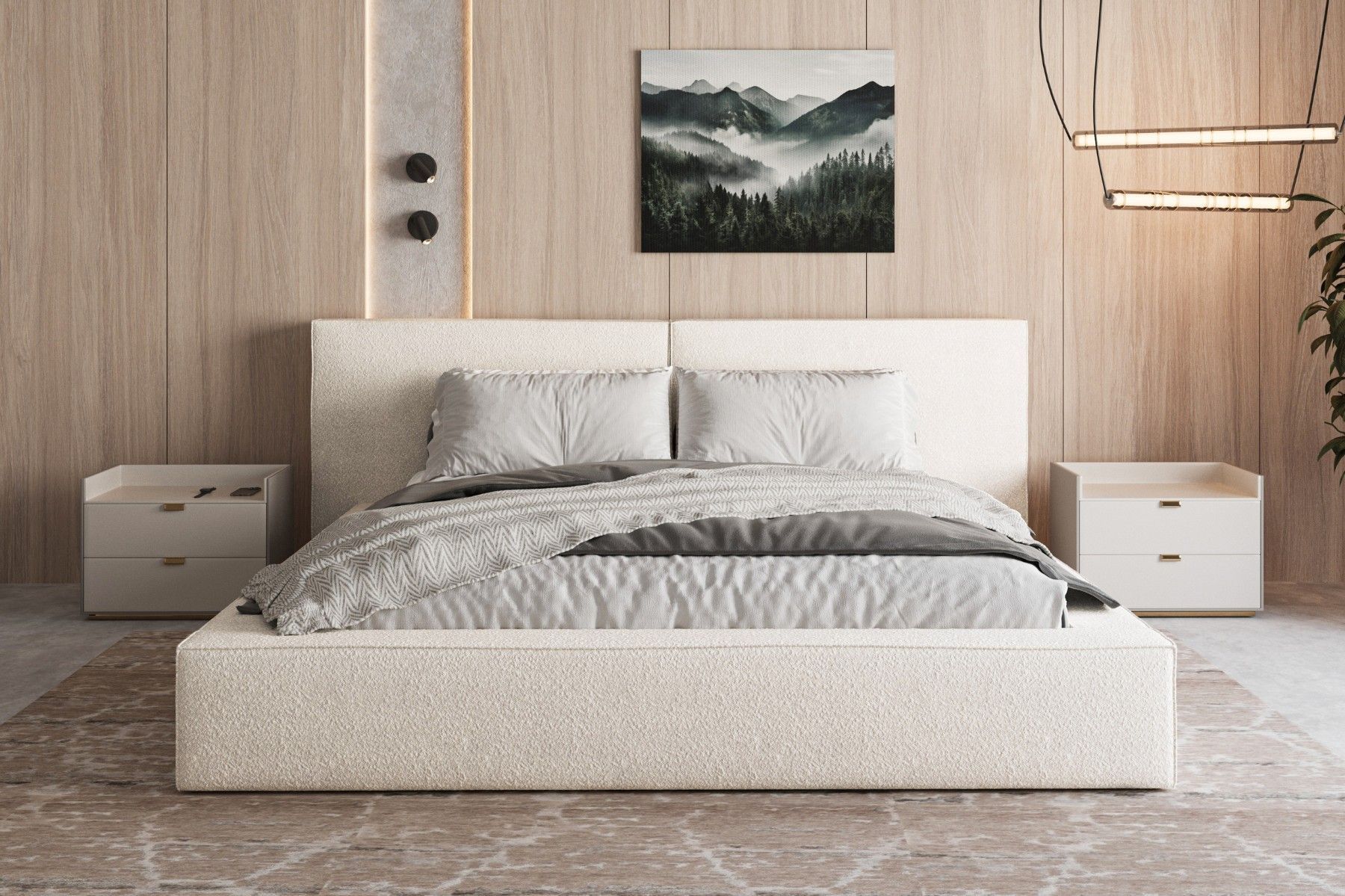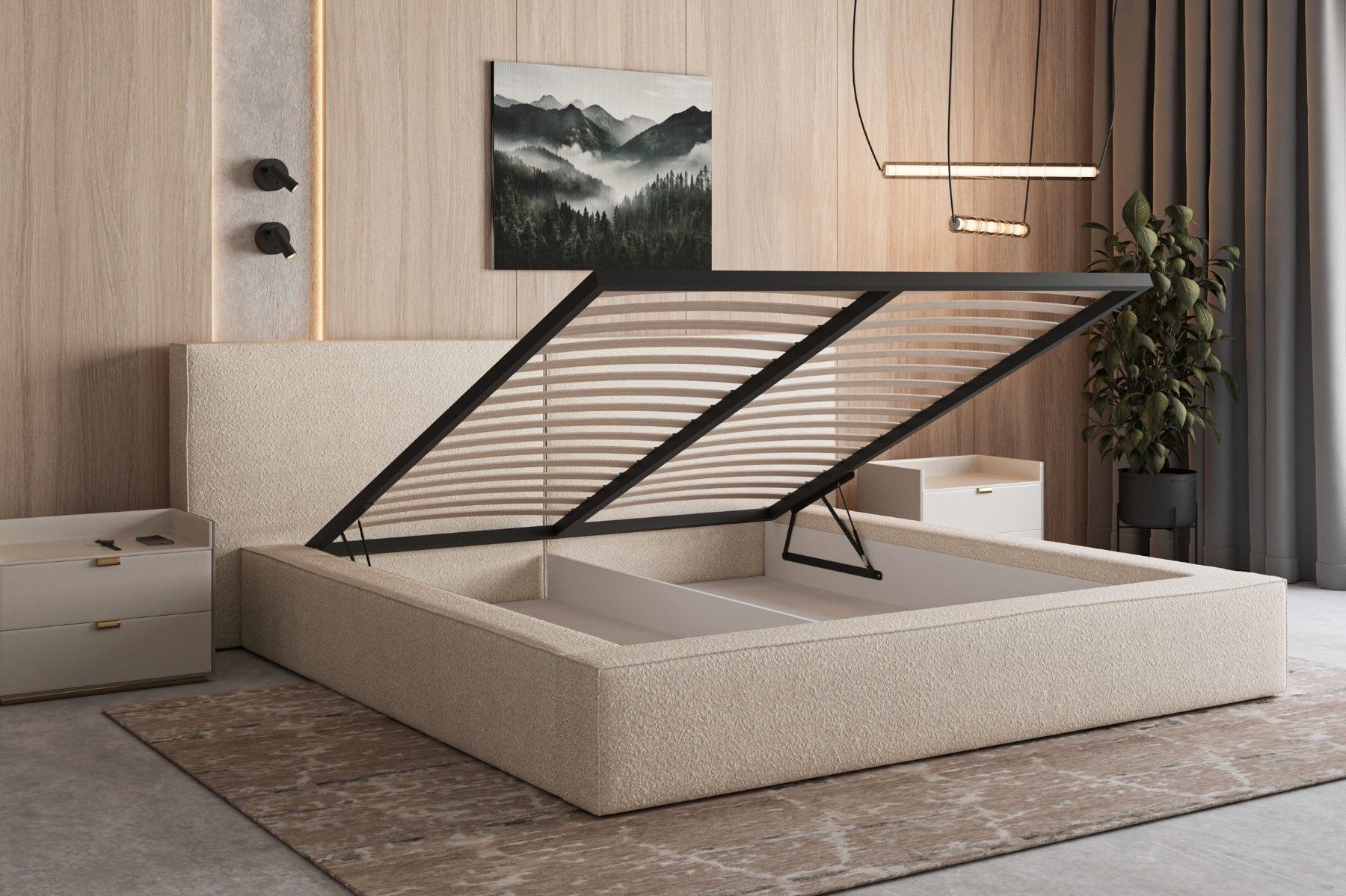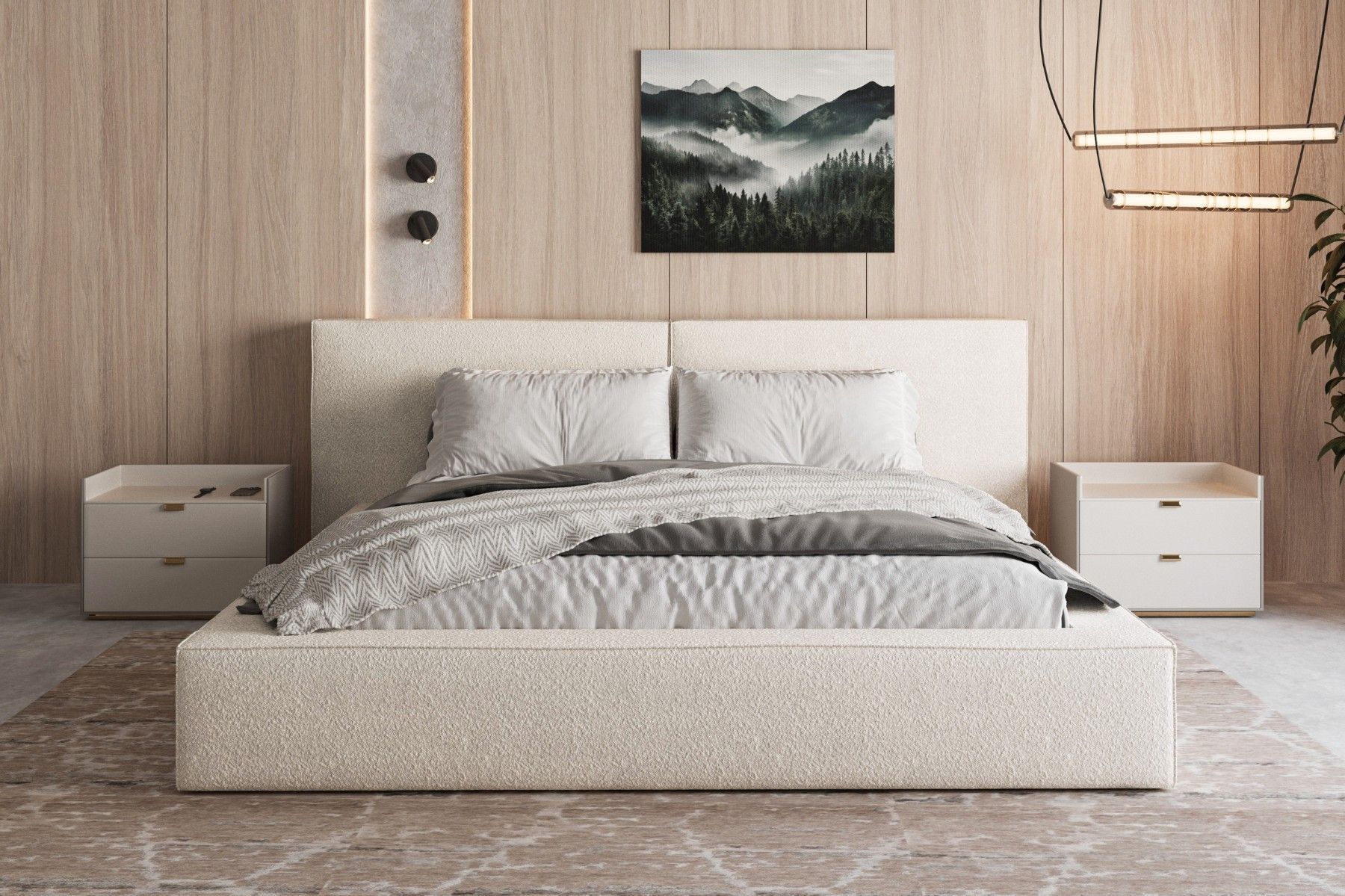 Polsterbett 06 Beige 140x200 cm aus bouclé Doppelbett mit Kopfstütze
