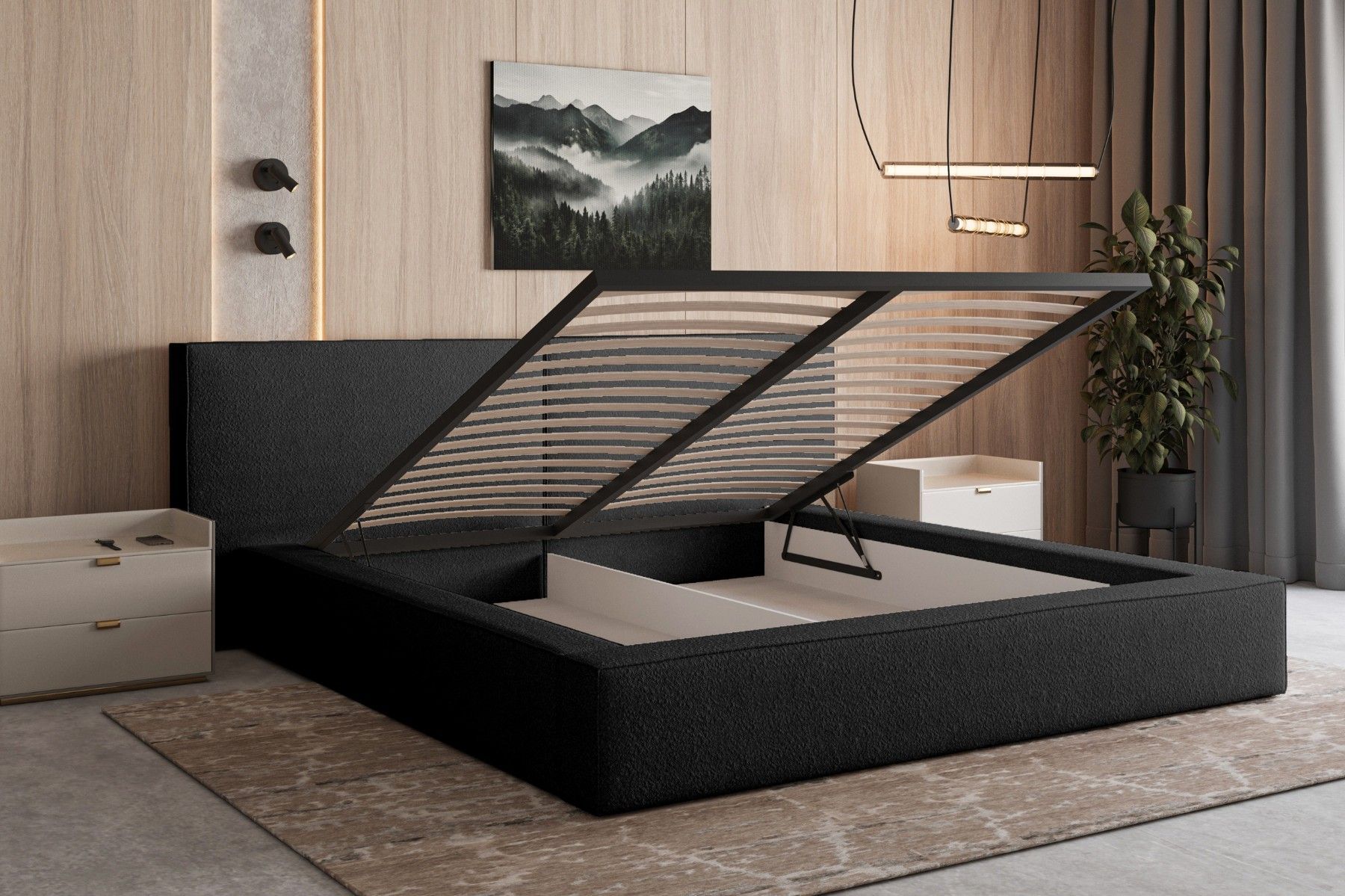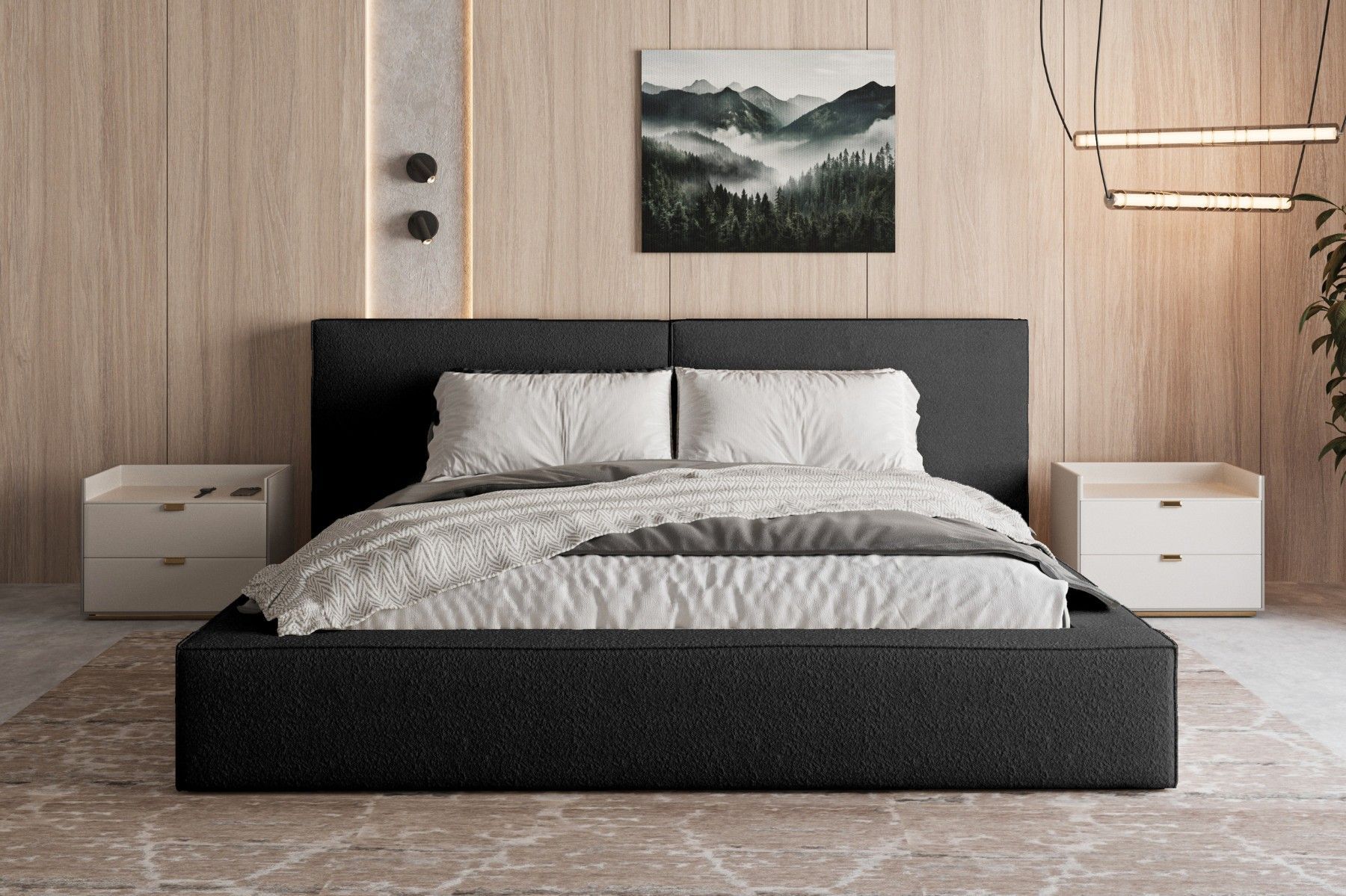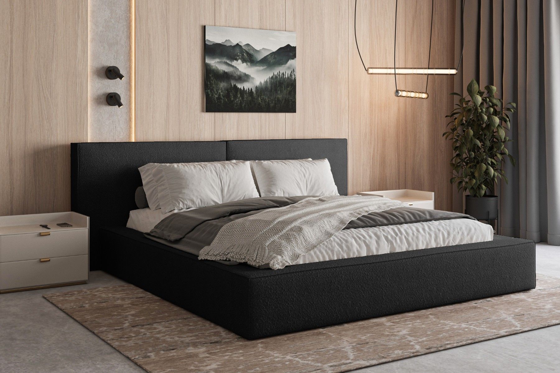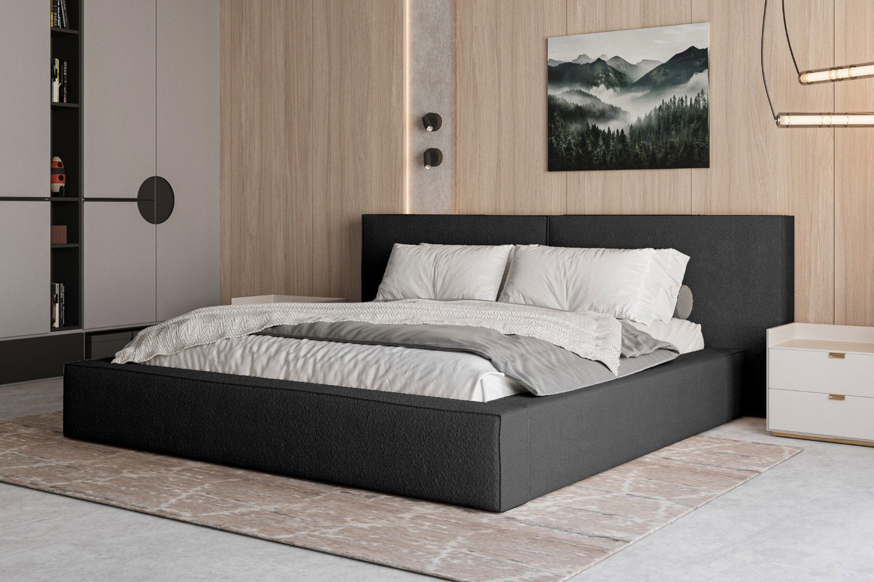 Polsterbett 06 Beige 140x200 cm aus bouclé Doppelbett mit Kopfstütze