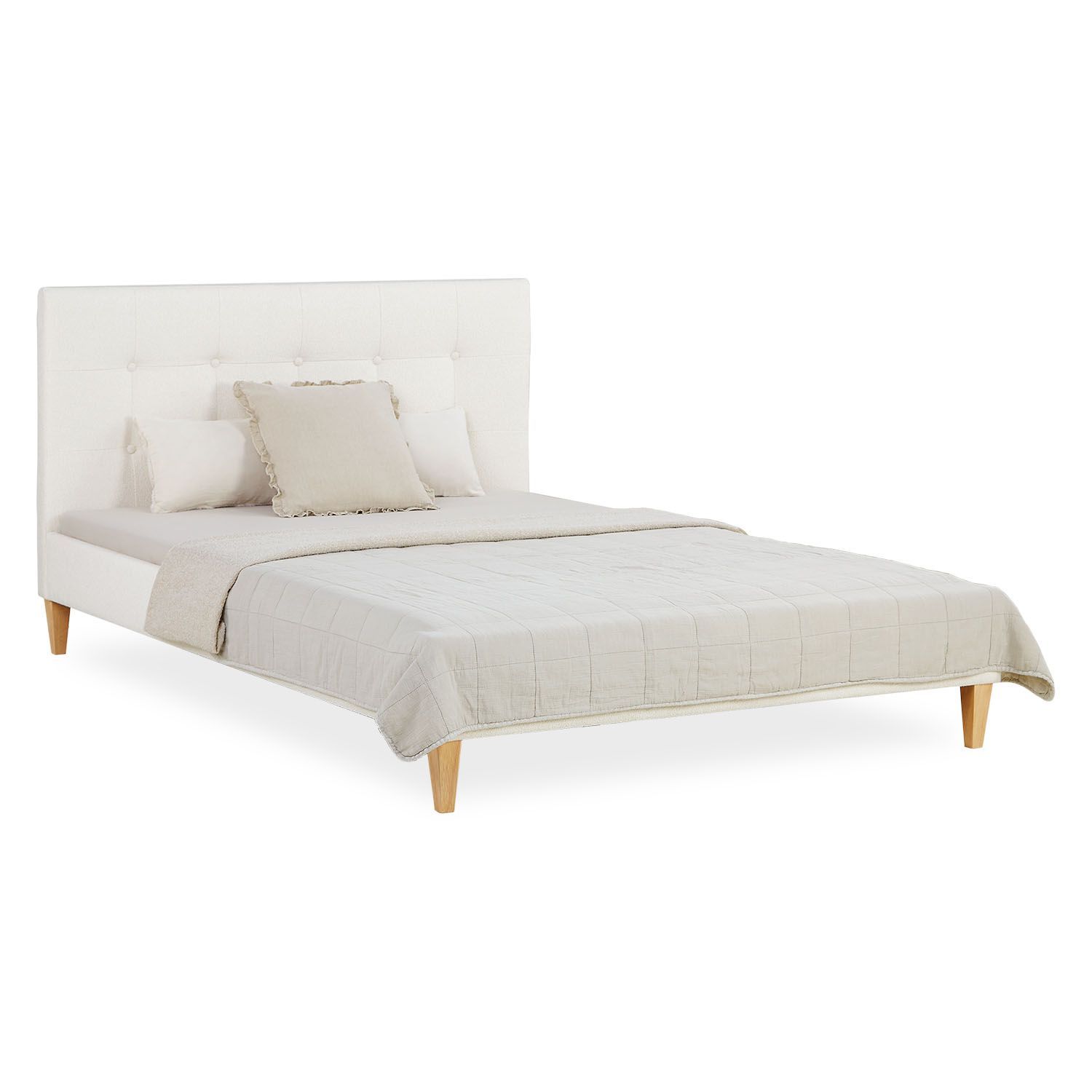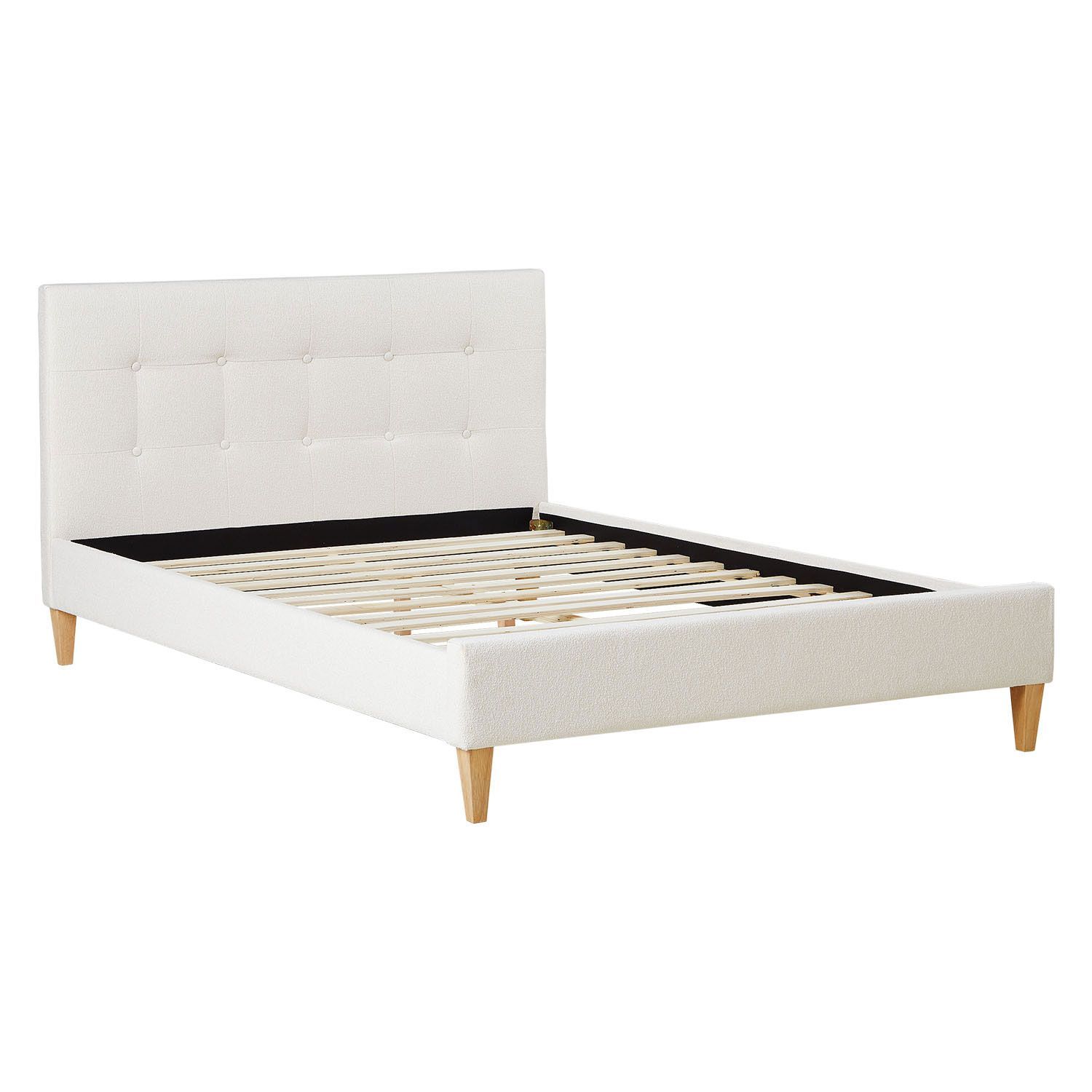 Polsterbett 140x200 cm mit Matratze Beige Bouclé Doppelbett Bett Bettgestell Latte