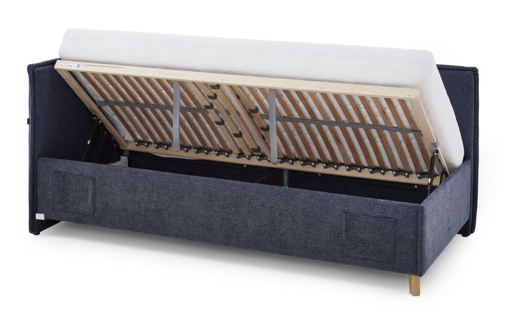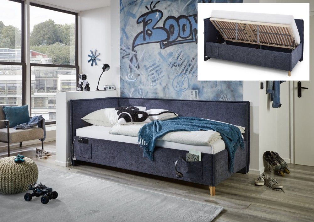 Meise Möbel Polsterbett 3 Größen Lattenrost Rückenteil Bettkasten USB Jugendbett Dunkelblau