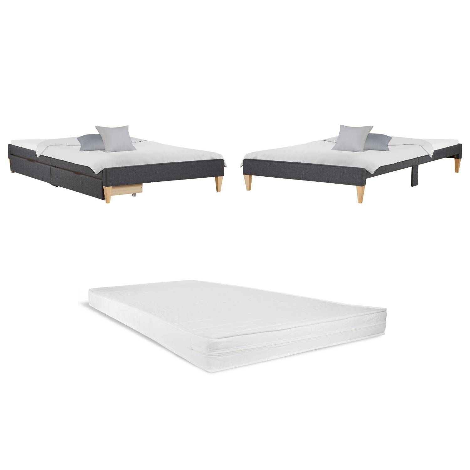 Polsterbett 90 140 x 200 cm Grau Einzelbett Doppelbett Futonbett Bett Bettgestell