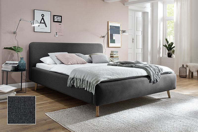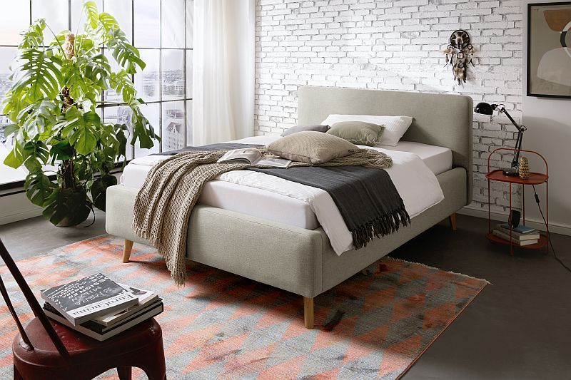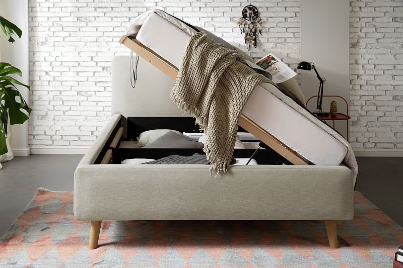 Polsterbett Bett MATTIS Stoffbezug Aspen mit Bettkasten