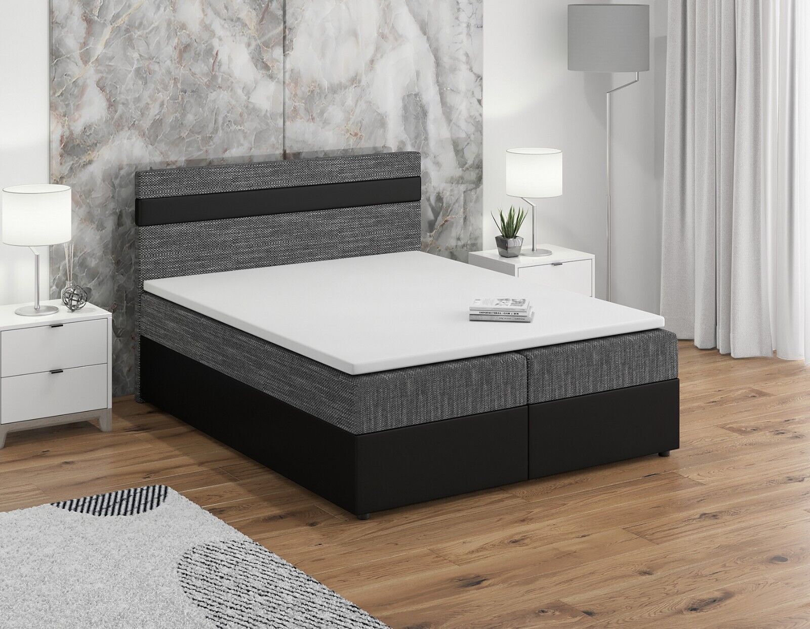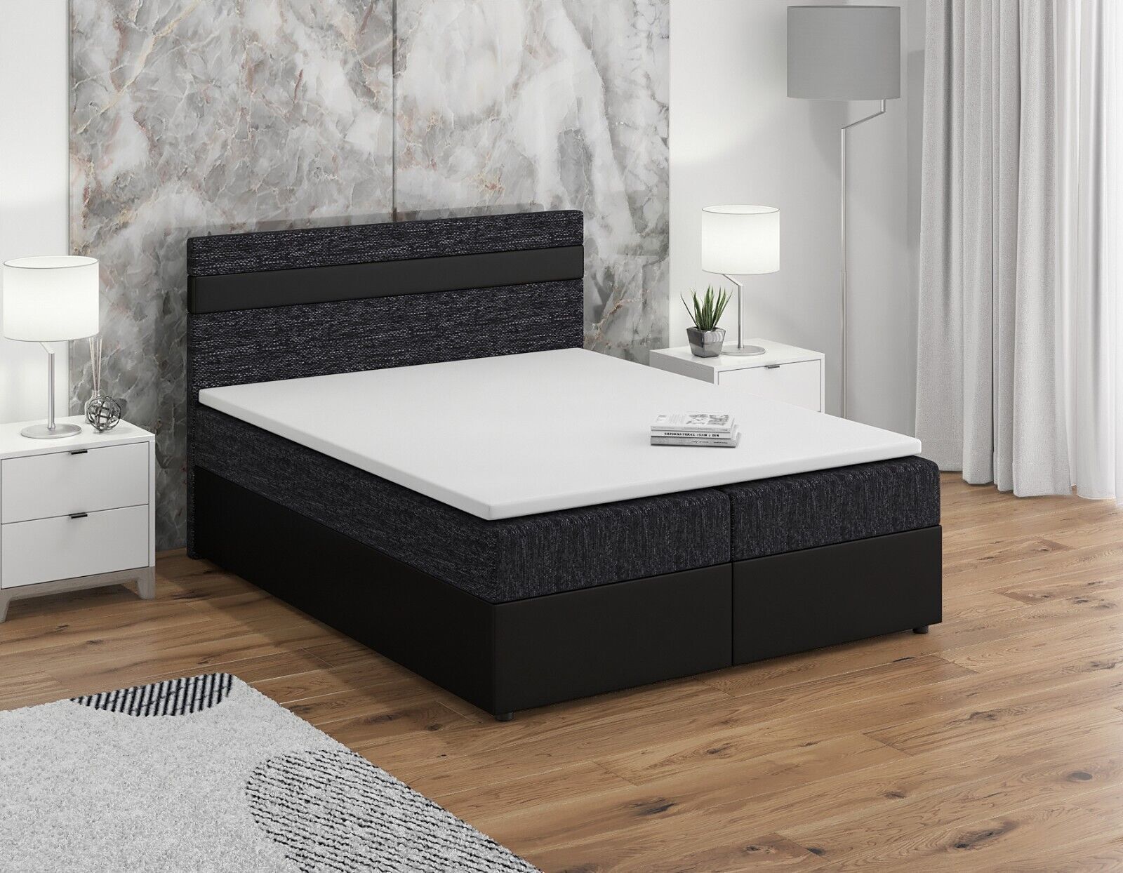 Boxspringbett mit Matratze, Boxbett, Topper, Polsterbett mit Bettkasten TOLO-Z