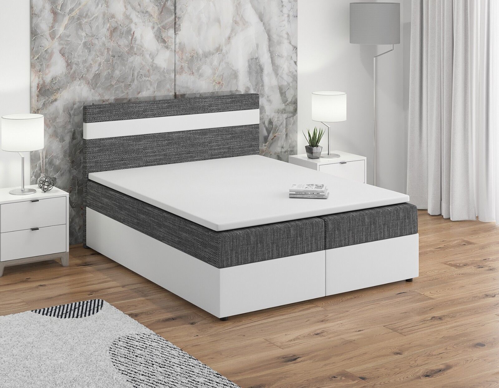 Boxspringbett mit Matratze, Boxbett, Topper, Polsterbett mit Bettkasten LOLLI1