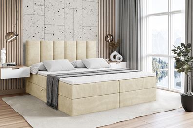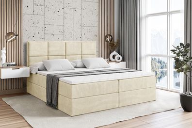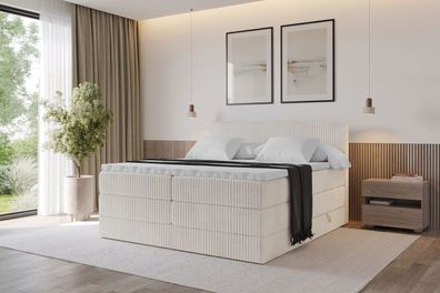 Boxspringbett mit Matratze, Boxbett, Topper, Polsterbett mit Bettkasten MOETI
