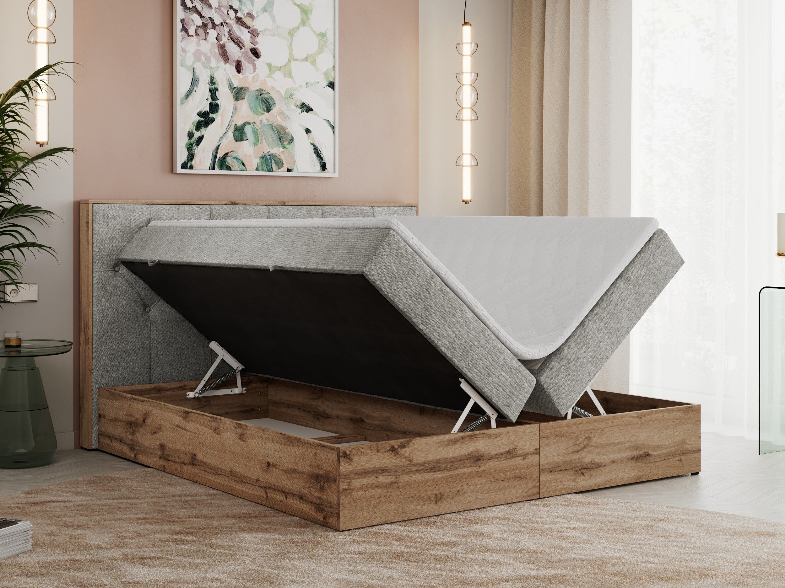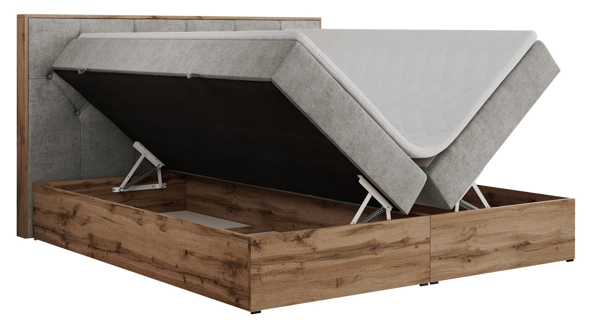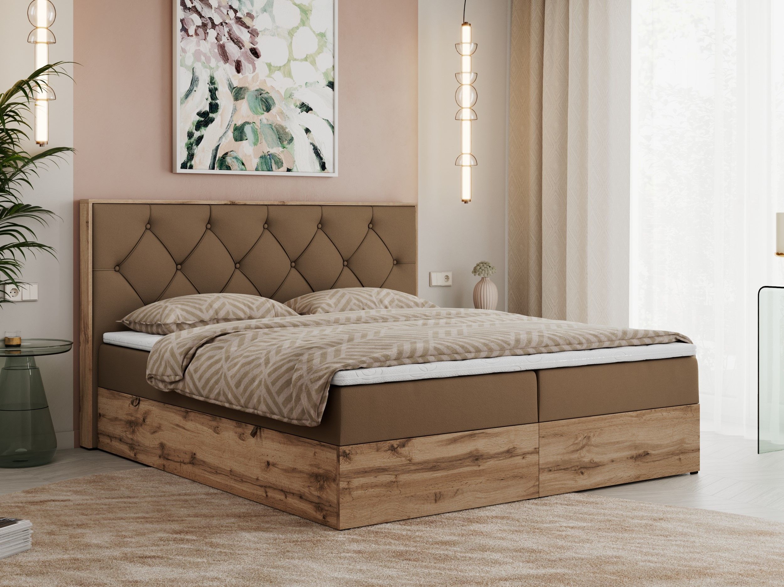 Polsterbett, Boxspringbett VENETO mit zwei Bettkästen, Eiche-Wotan Holzrahmen
