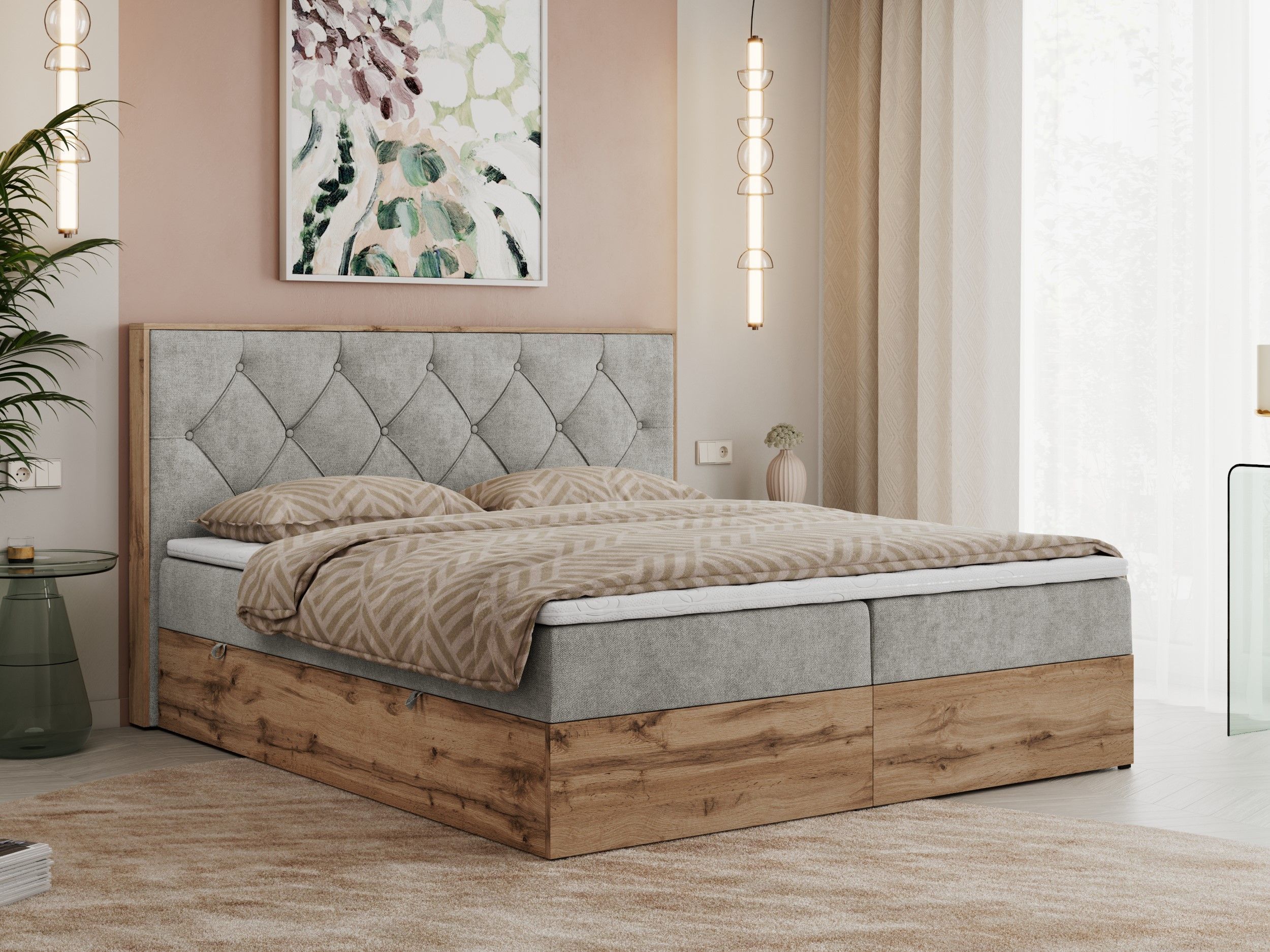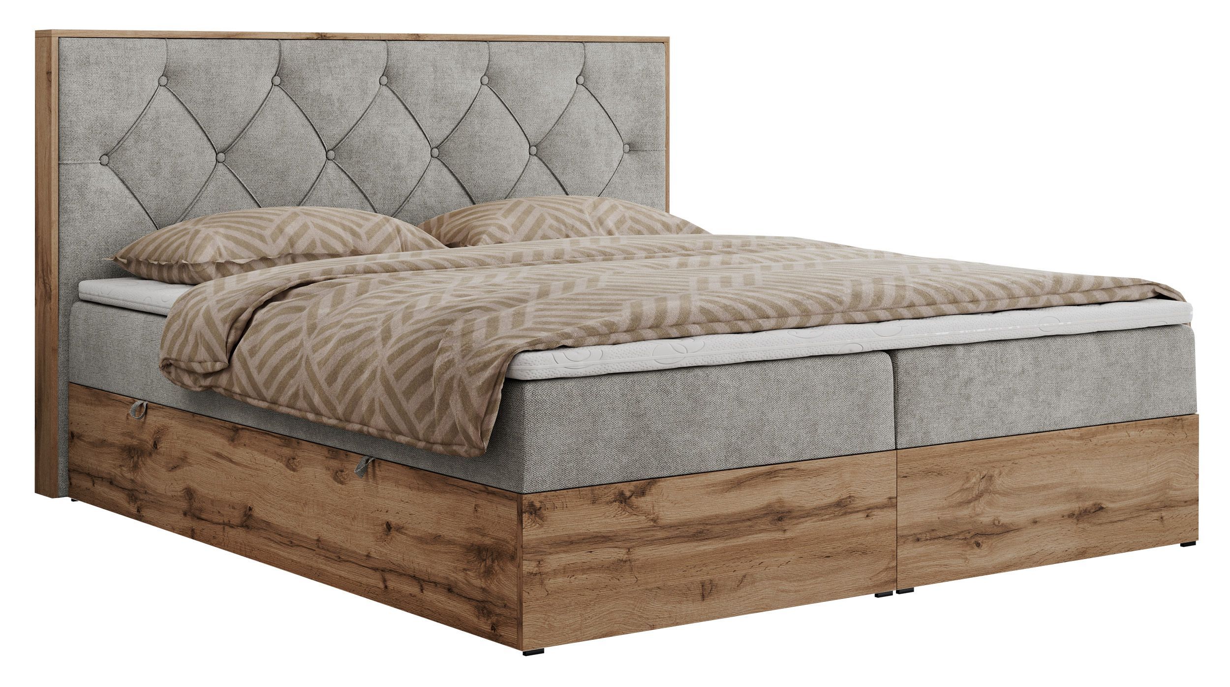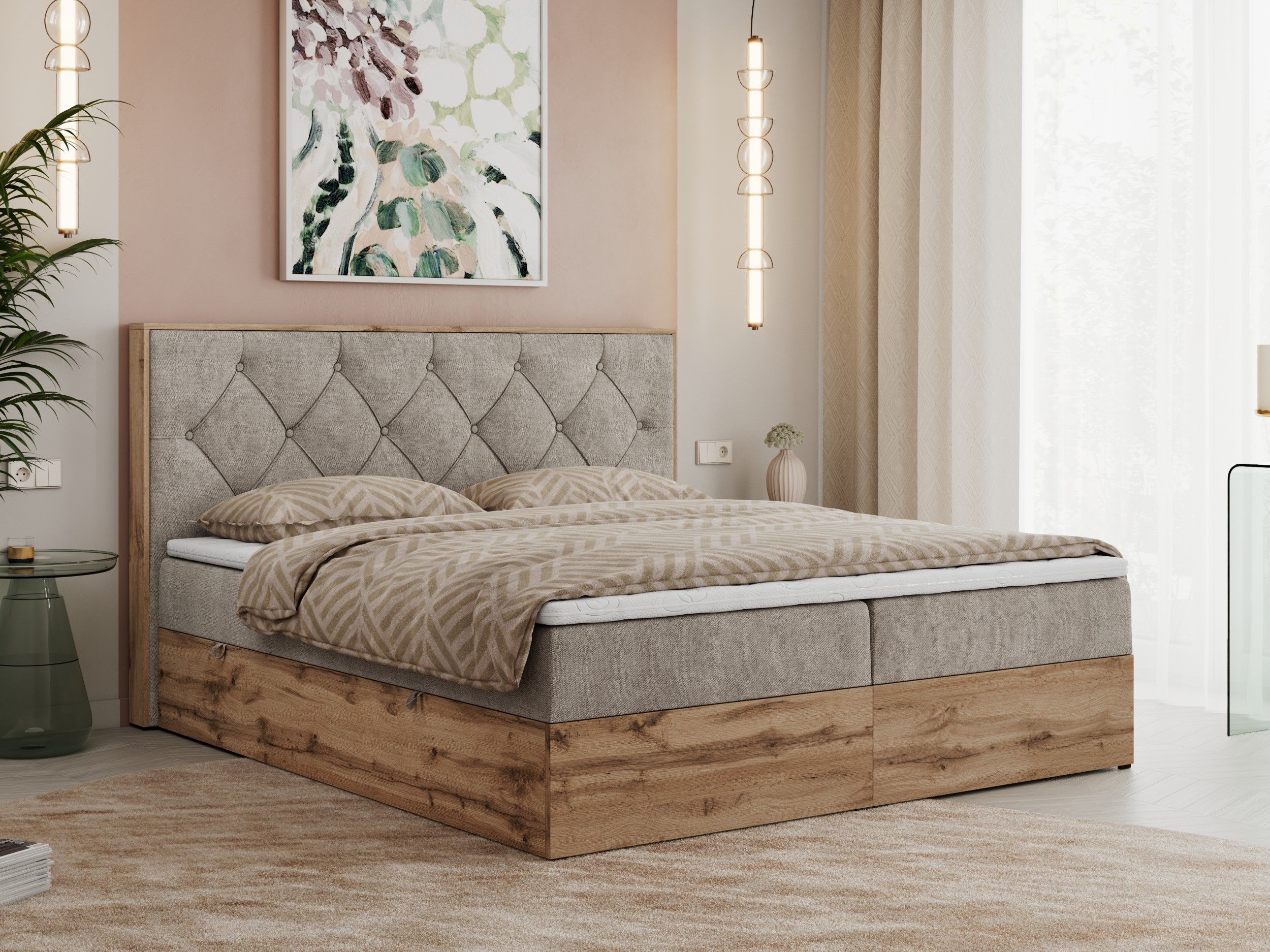 Polsterbett, Boxspringbett VENETO mit zwei Bettkästen, Eiche-Wotan Holzrahmen