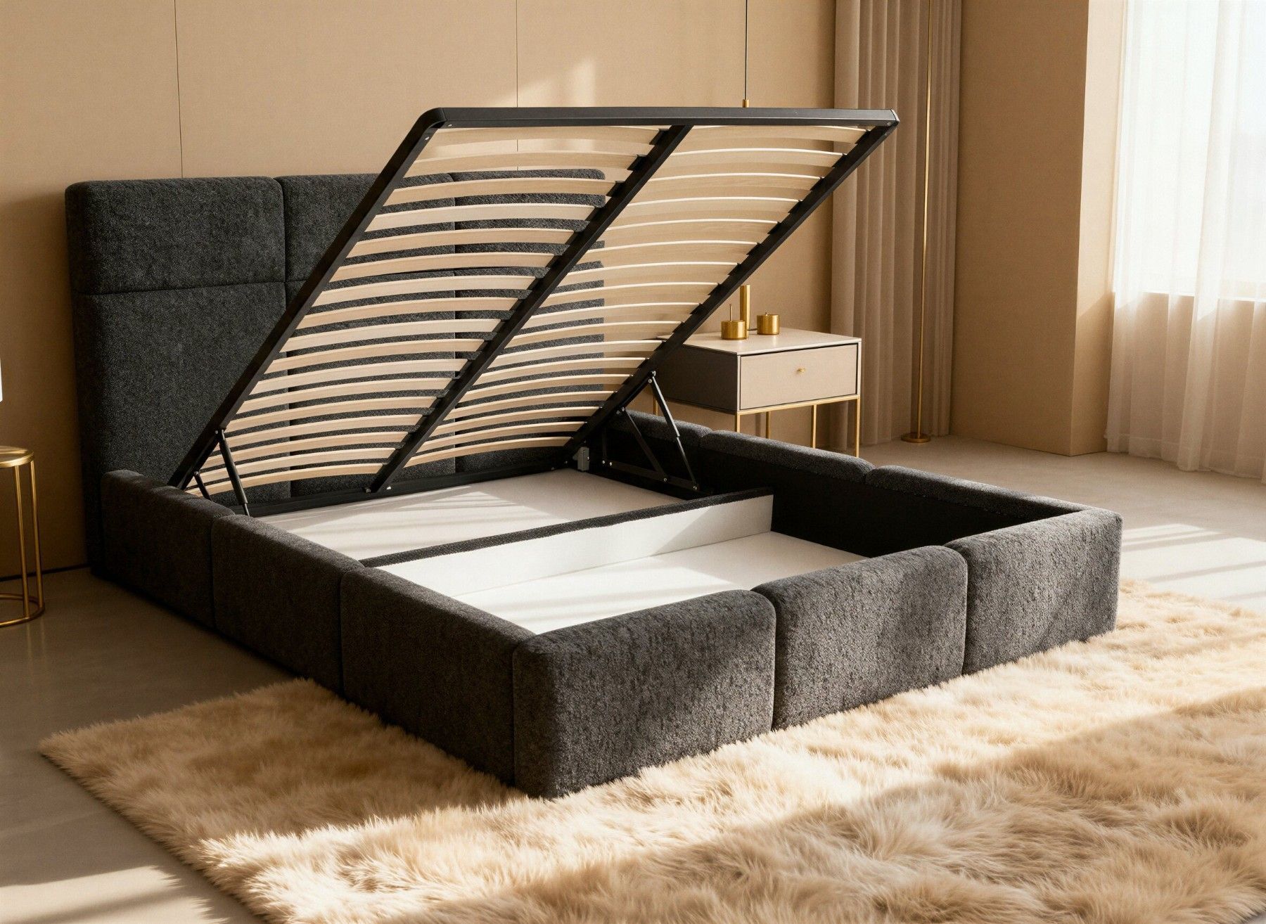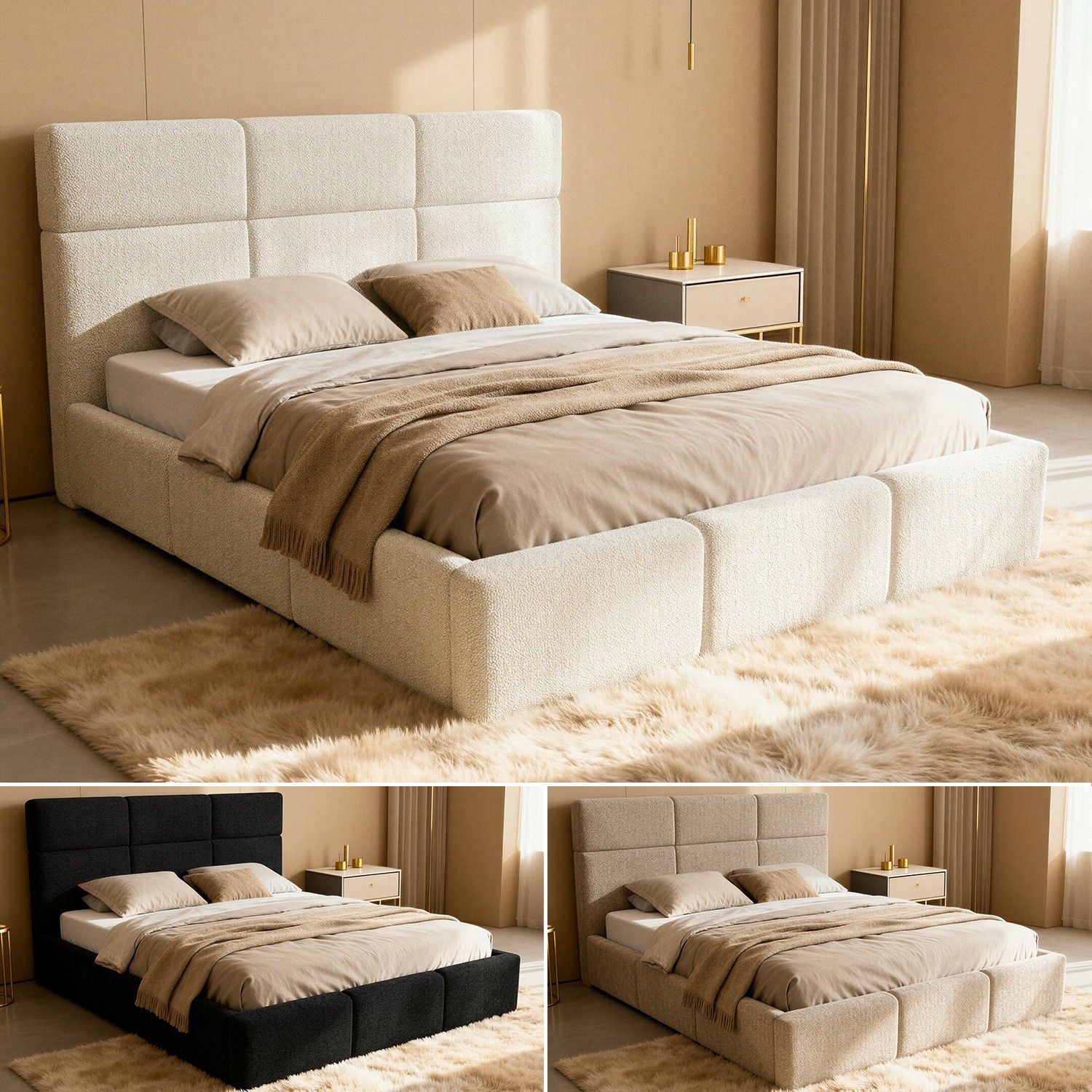 Sofnet Polsterbett CELINE Bettkasten mit Gasdruckfedern, Doppelbett mit Lattenrost, Bouclé