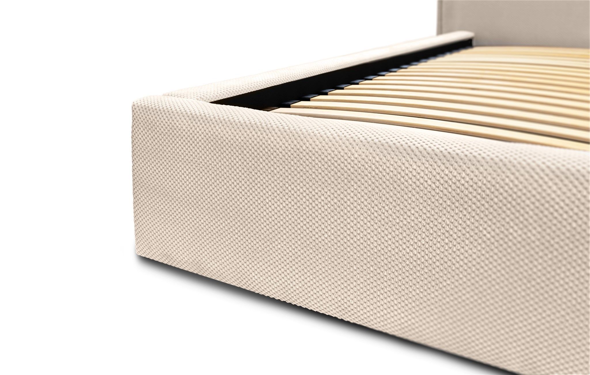Polsterbett Aura Bettkasten mit Gasdruckfedern - Doppelbett mit Lattenrost, Bouclé