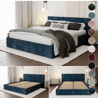 Muralo Polsterbett mit Bettkaste Doppelbett für Schlafzimmer Bett mit Polsterkopfteil