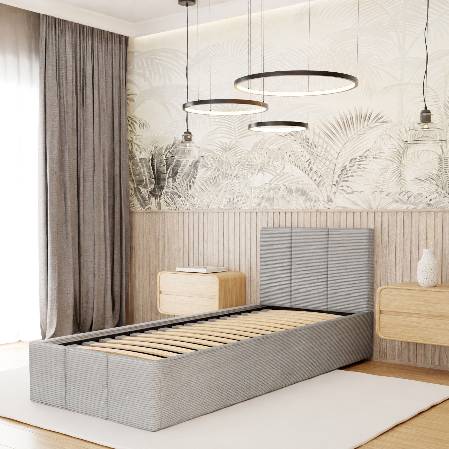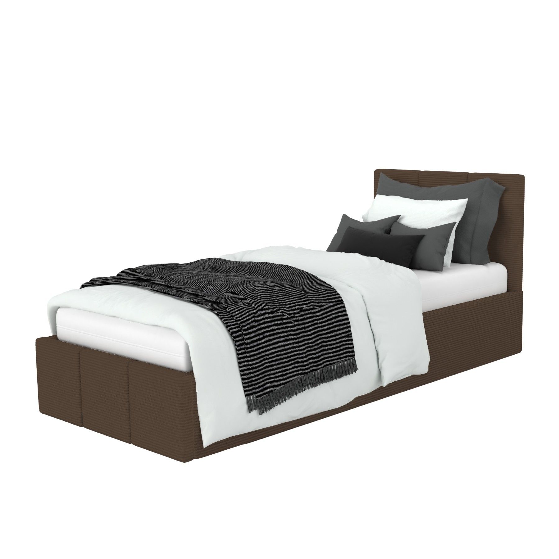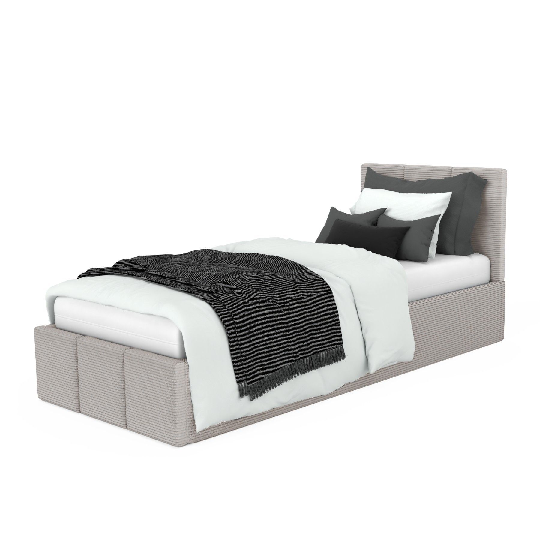 Polsterbett für Schlafzimmer Einzelbett mit Polsterkopfteil Bett mit Bettkaste