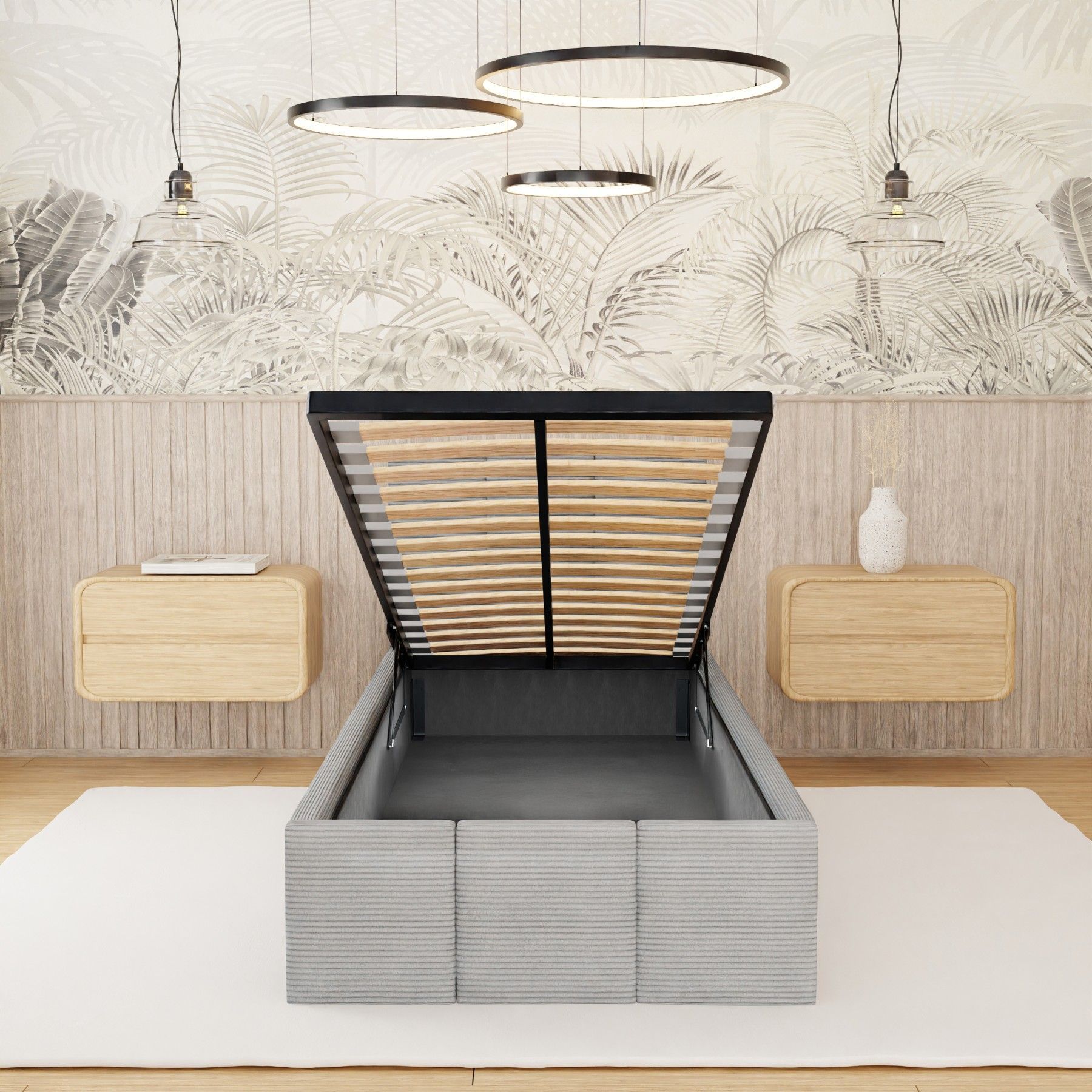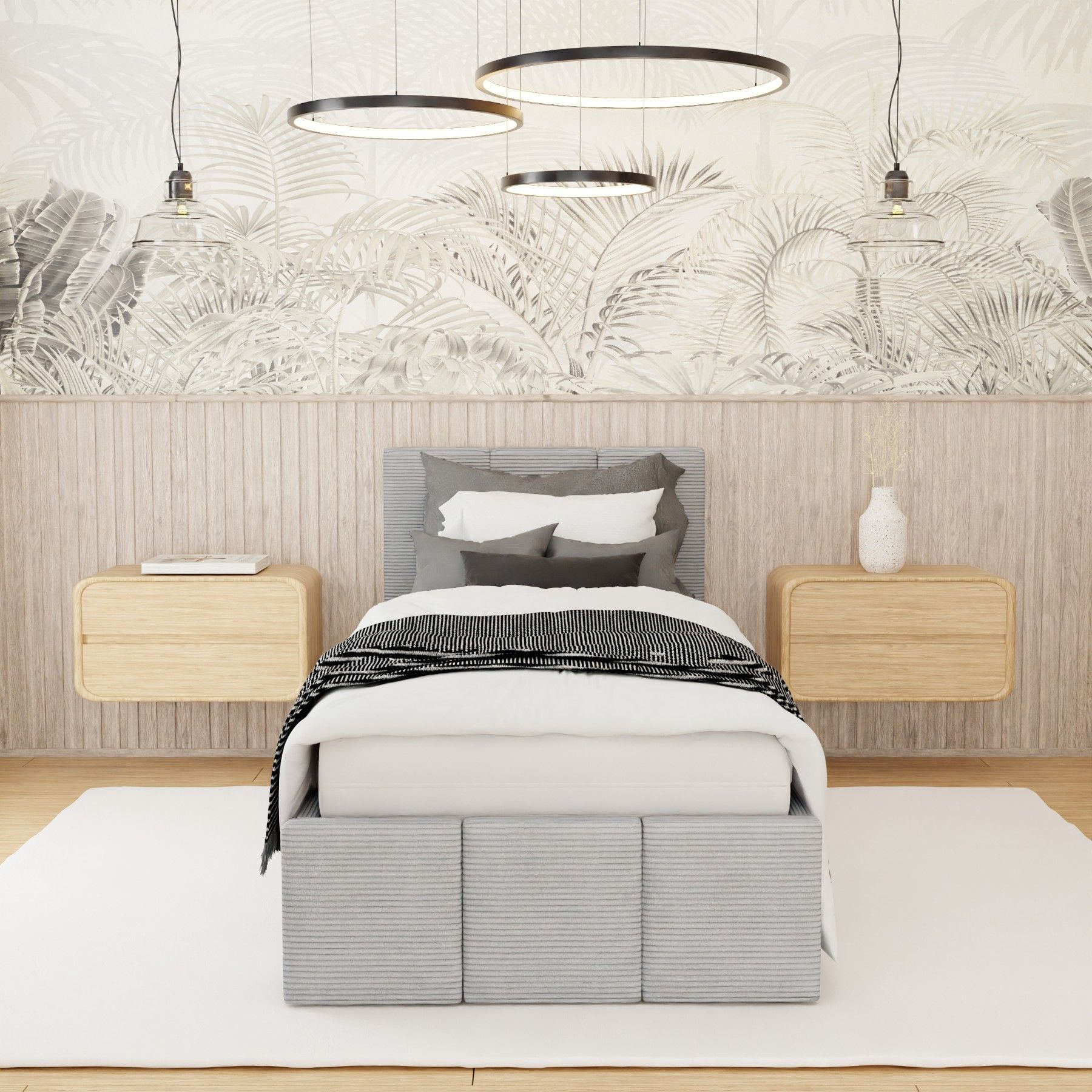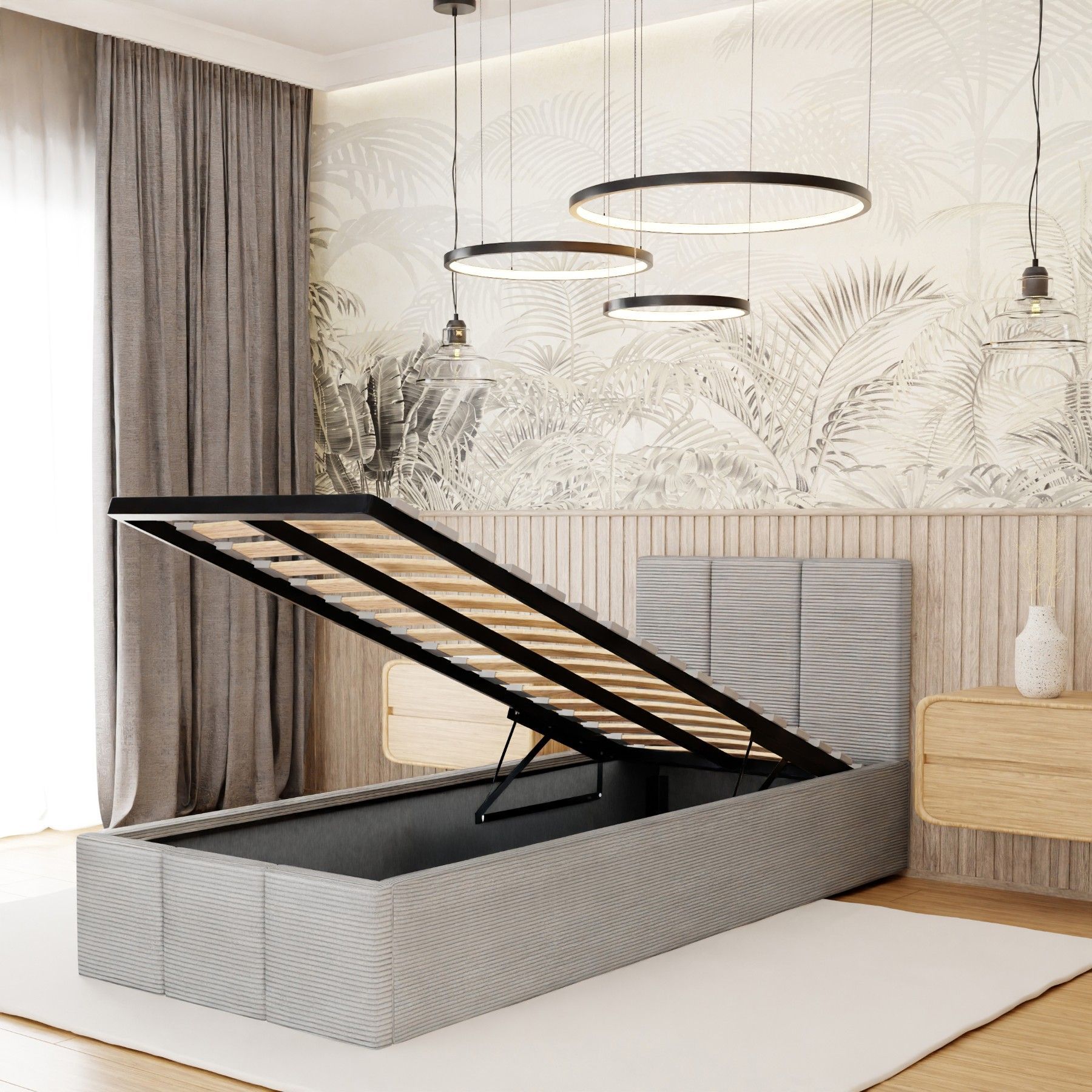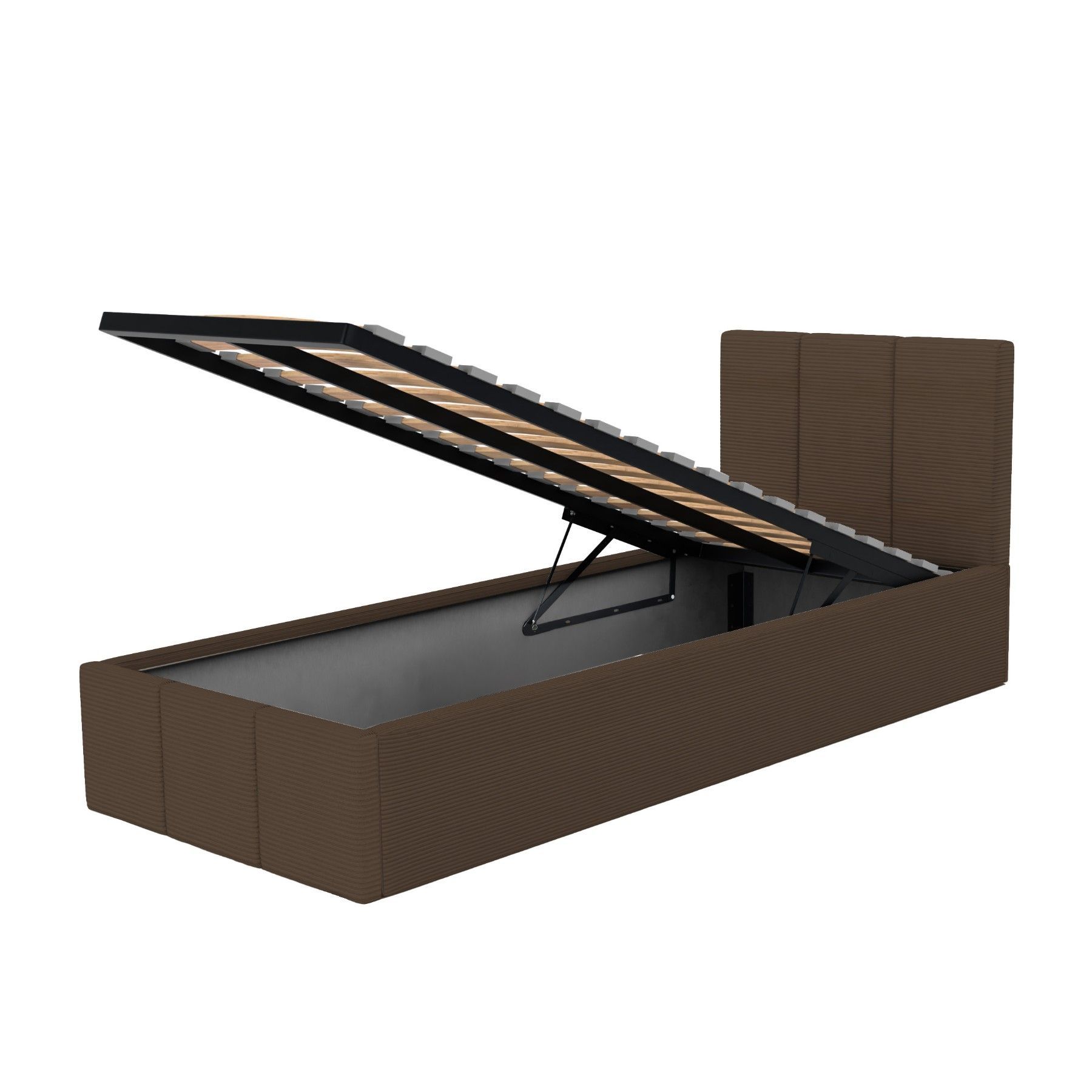 Polsterbett für Schlafzimmer Einzelbett mit Polsterkopfteil Bett mit Bettkaste