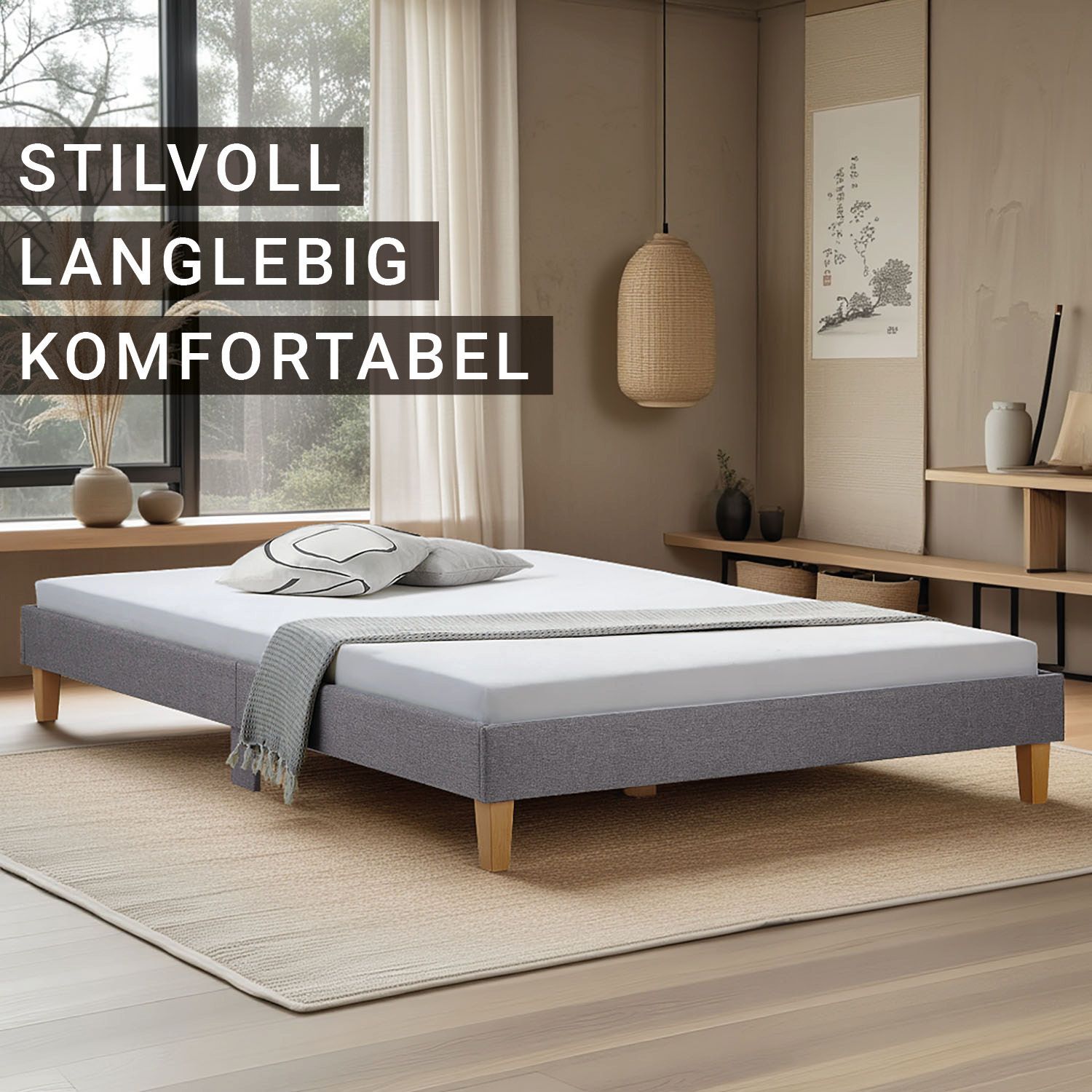 Polsterbett Grau Futonbett Bett Bettgestell Lattenrost 90 120 140 160 180