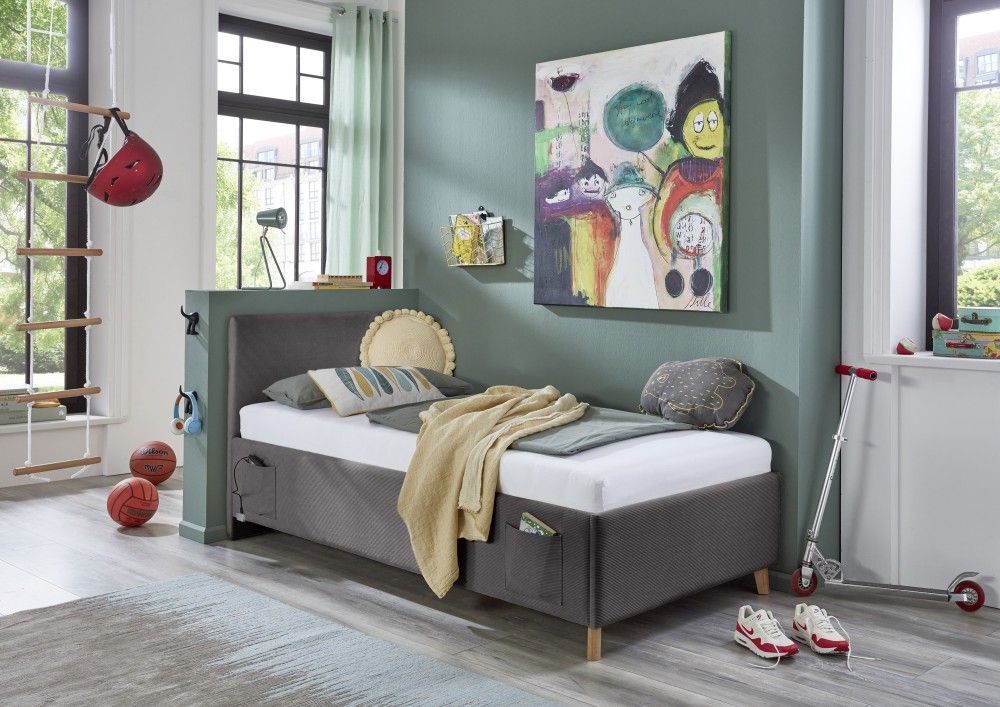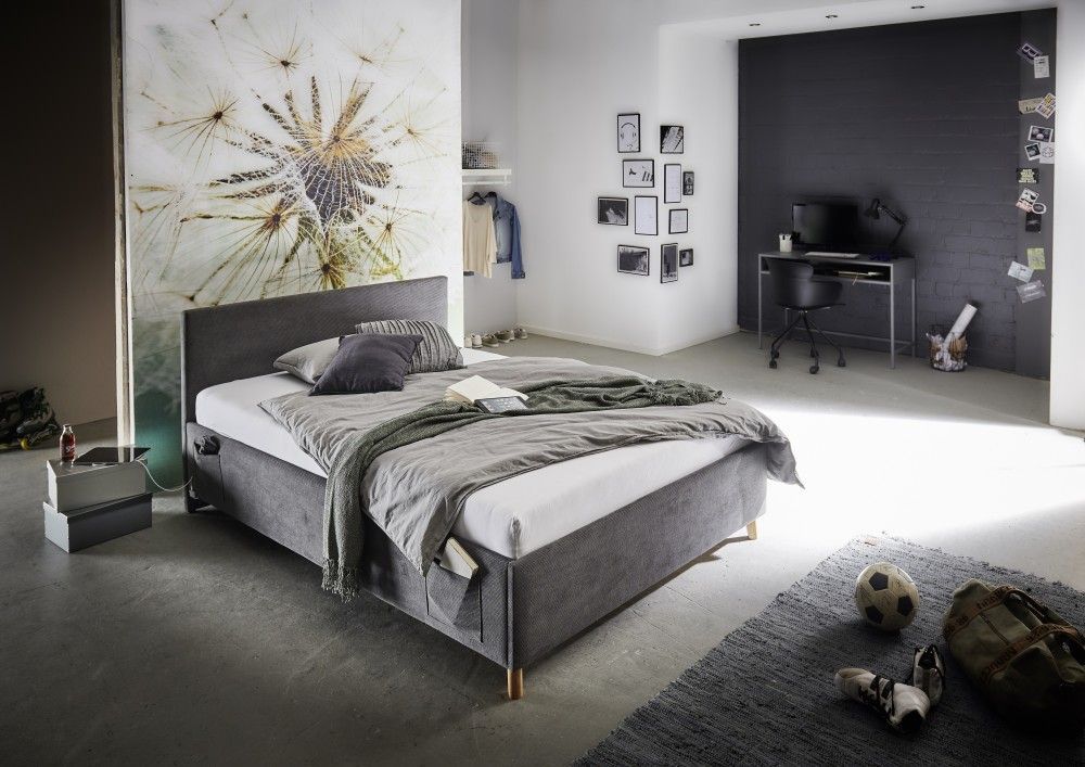 Meise Möbel Polsterbett in 3 Größen Jugendbett Polsterliege USB-Anschluss Anthrazit