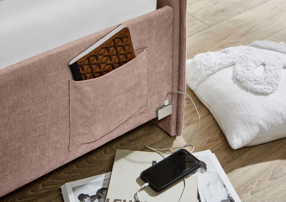 Meise Möbel Polsterbett in 3 Größen mit Rückenteil USB-Anschluss Jugendbett Rose