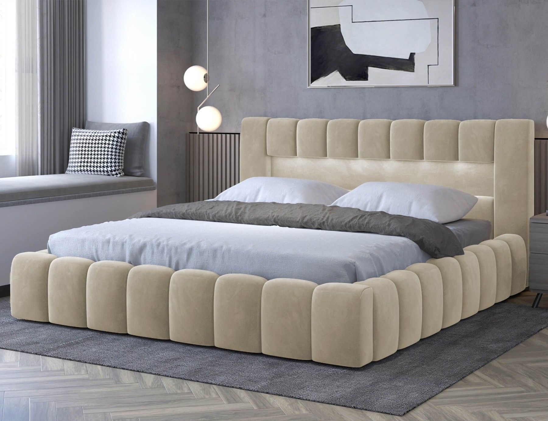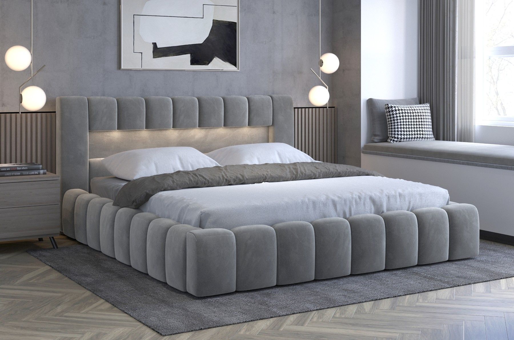 Polsterbett Lamica Holzrahmen Bett Doppelbett Bettgestell Lattenrost mit LED
