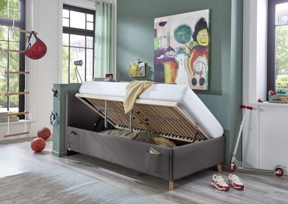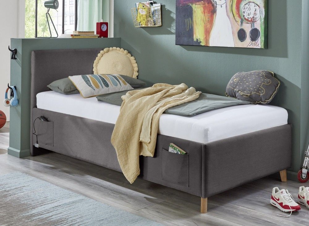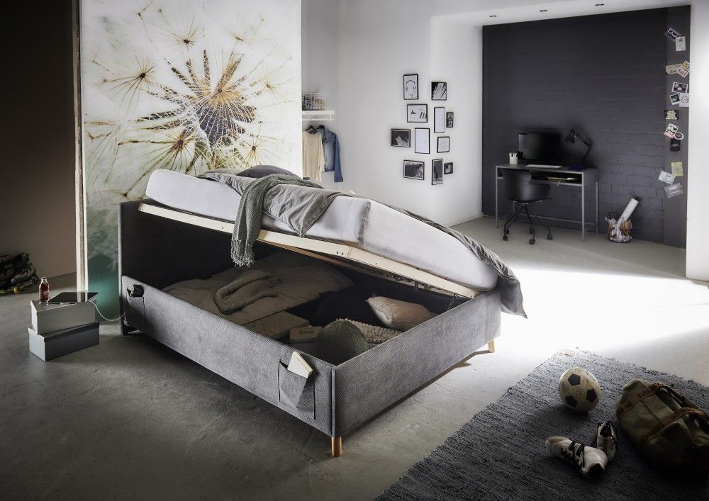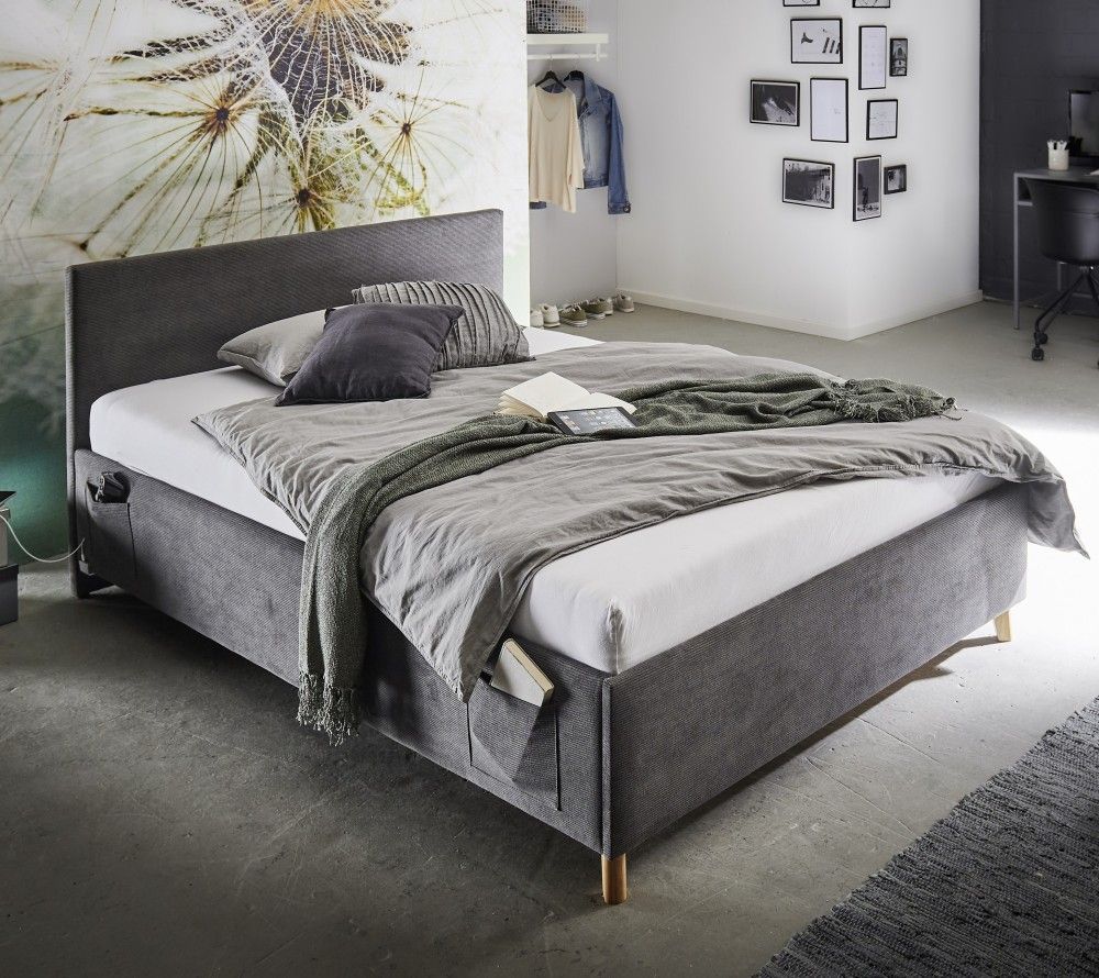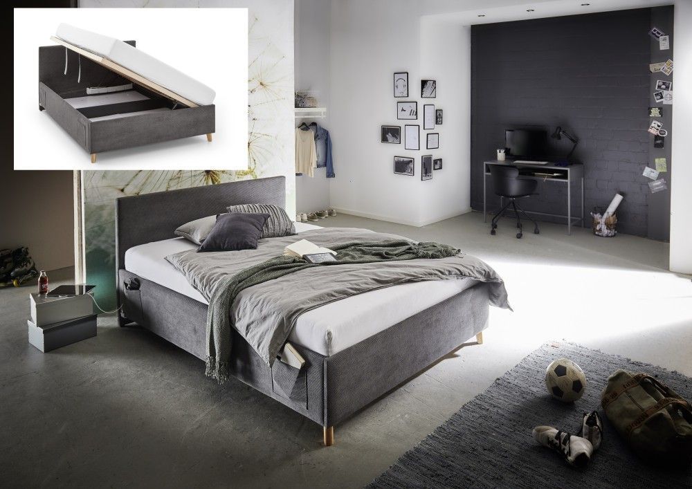 Meise Möbel Polsterbett mit Bettkasten Lattenrost 3 Größen Jugendbett USB-Anschluss Anthrazit