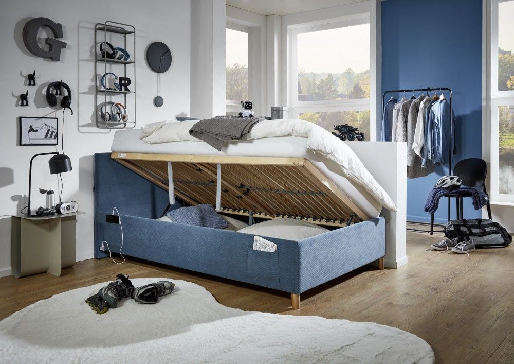Meise Möbel Polsterbett mit Bettkasten Lattenrost 3 Größen Jugendbett USB-Anschluss Ocean