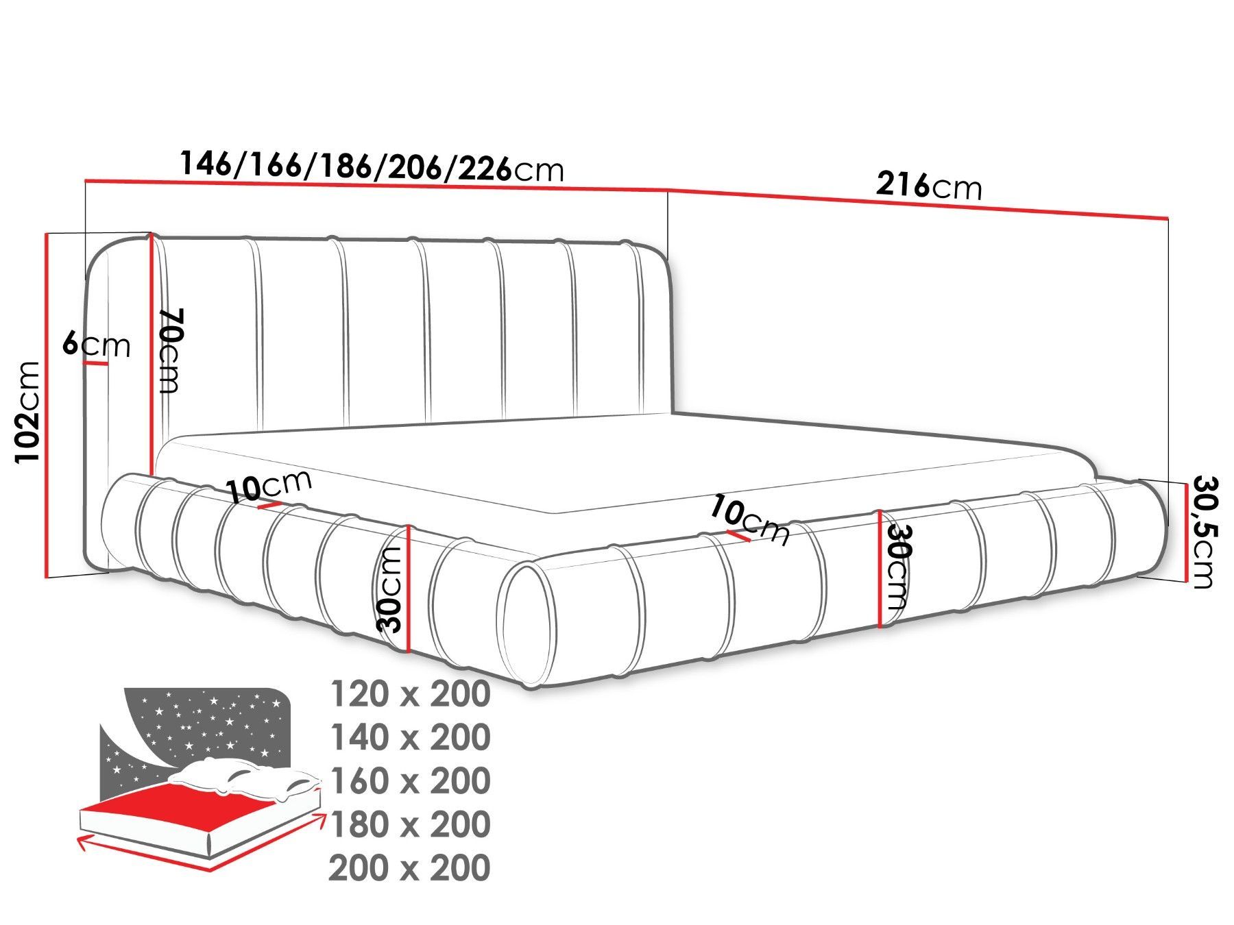 Polsterbett mit Bettkasten Slim XI Lattenrost Doppelbett Ehebett Schlafzimmer M24