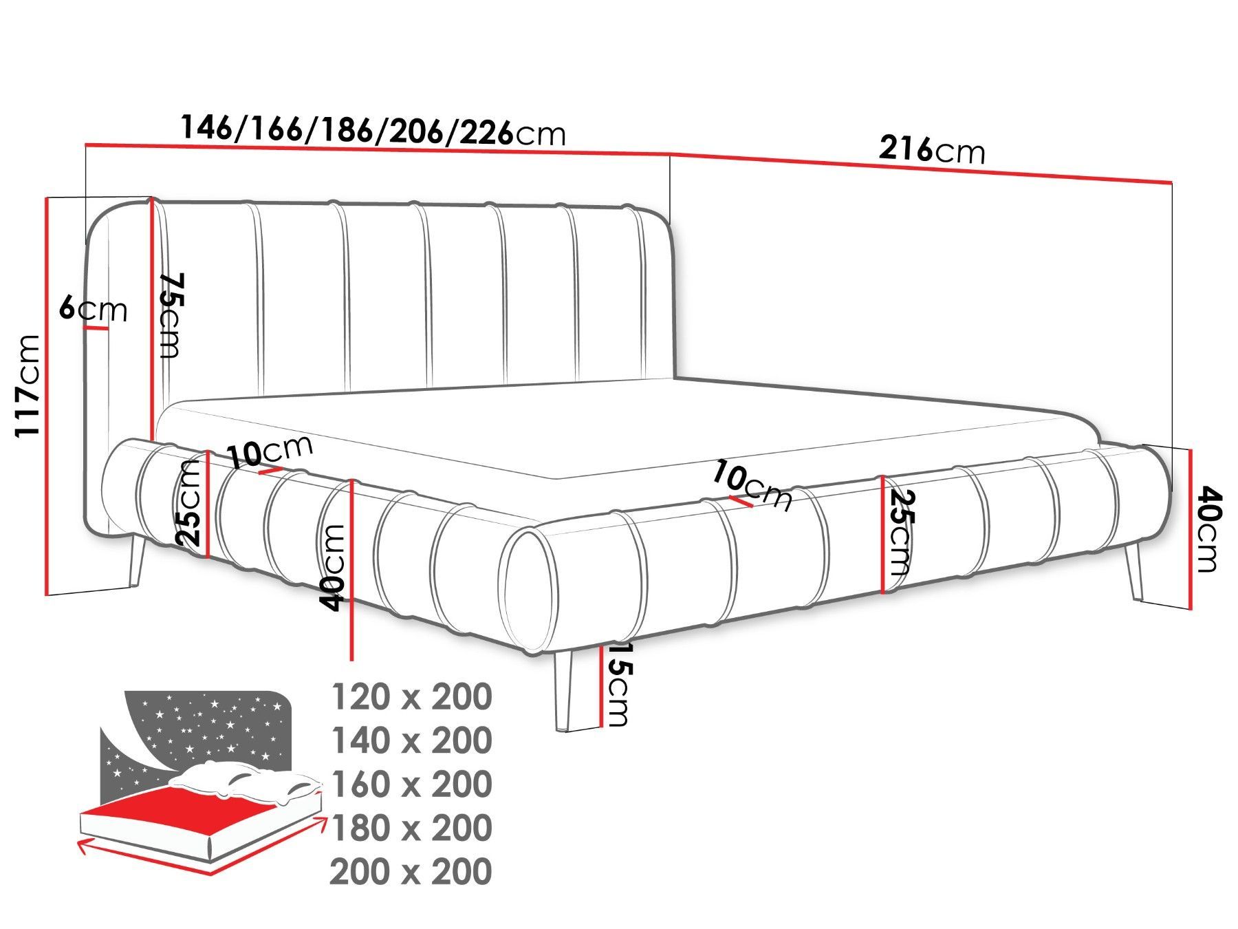Polsterbett mit Bettkasten Slim XI mit Gold Füße Lattenrost Doppelbett Schlafzimmer