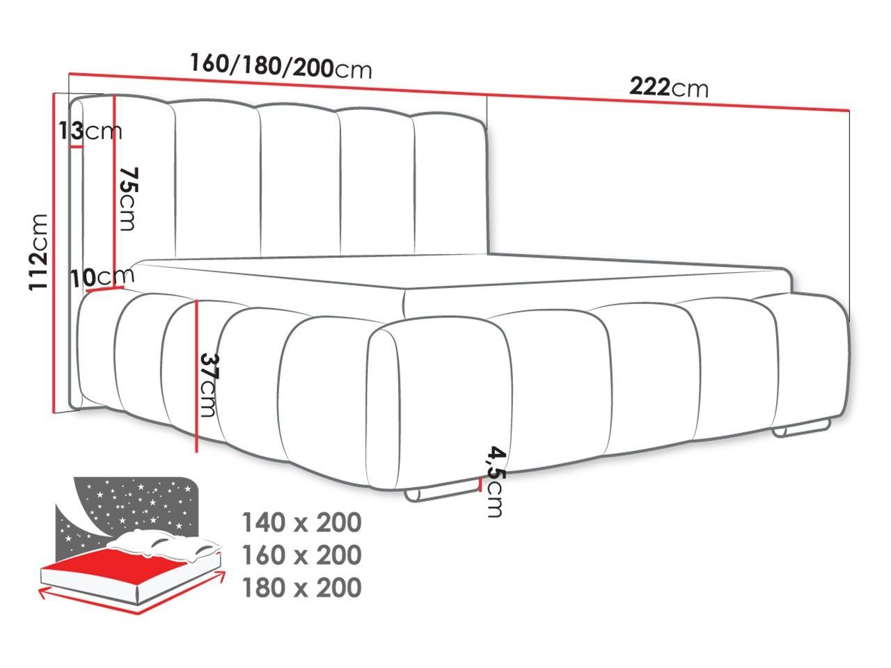 FEDVE Polsterbett Doppelbett PESARO Bett Bettkasten Matratze 120/140/160/180/200x200