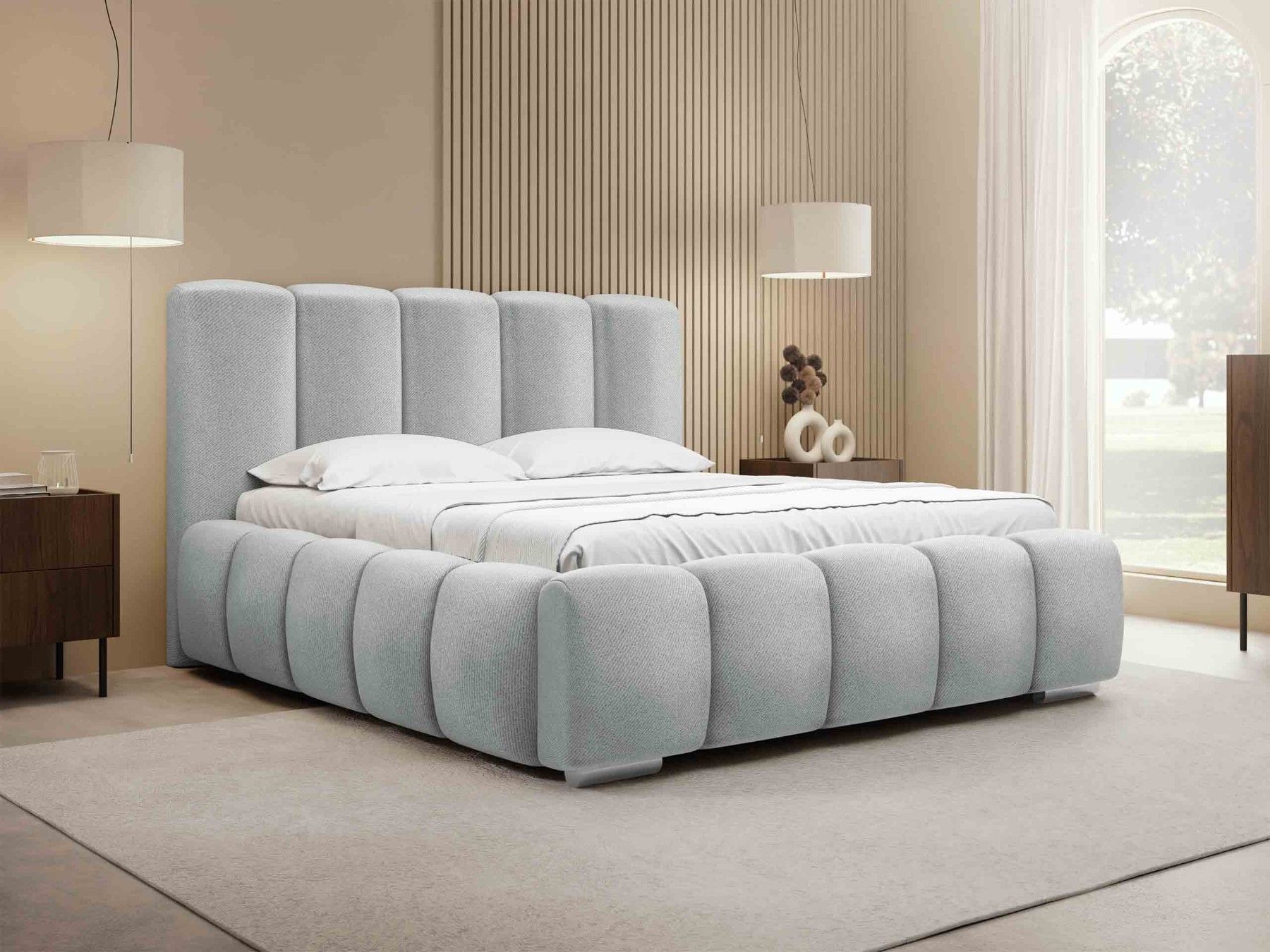 Polsterbett Aura Bettkasten mit Gasdruckfedern - Doppelbett mit Lattenrost, Bouclé