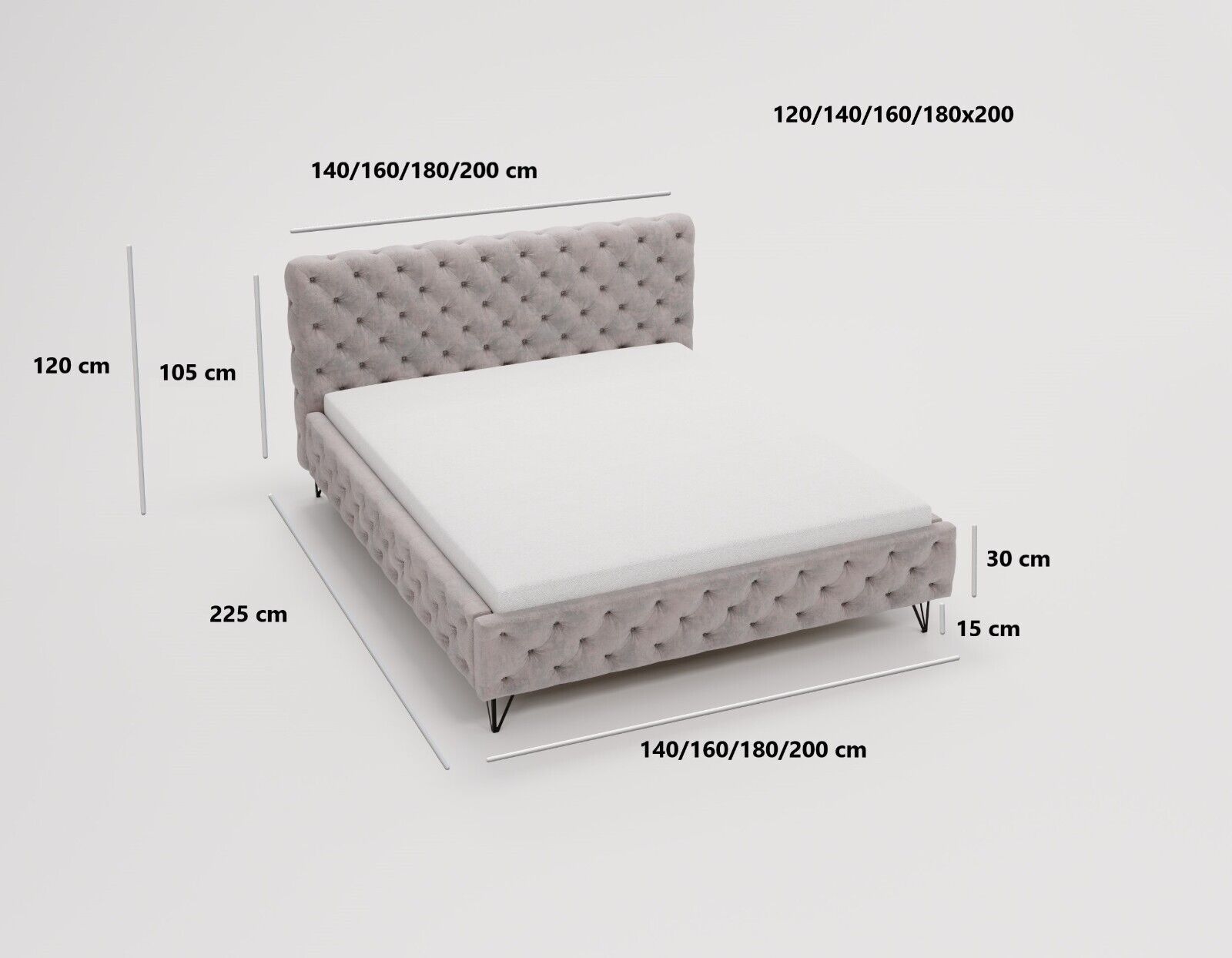 • Polsterbett Princce Bett Doppelbett Bettgestell Lattenrost Chesterfield Bett
