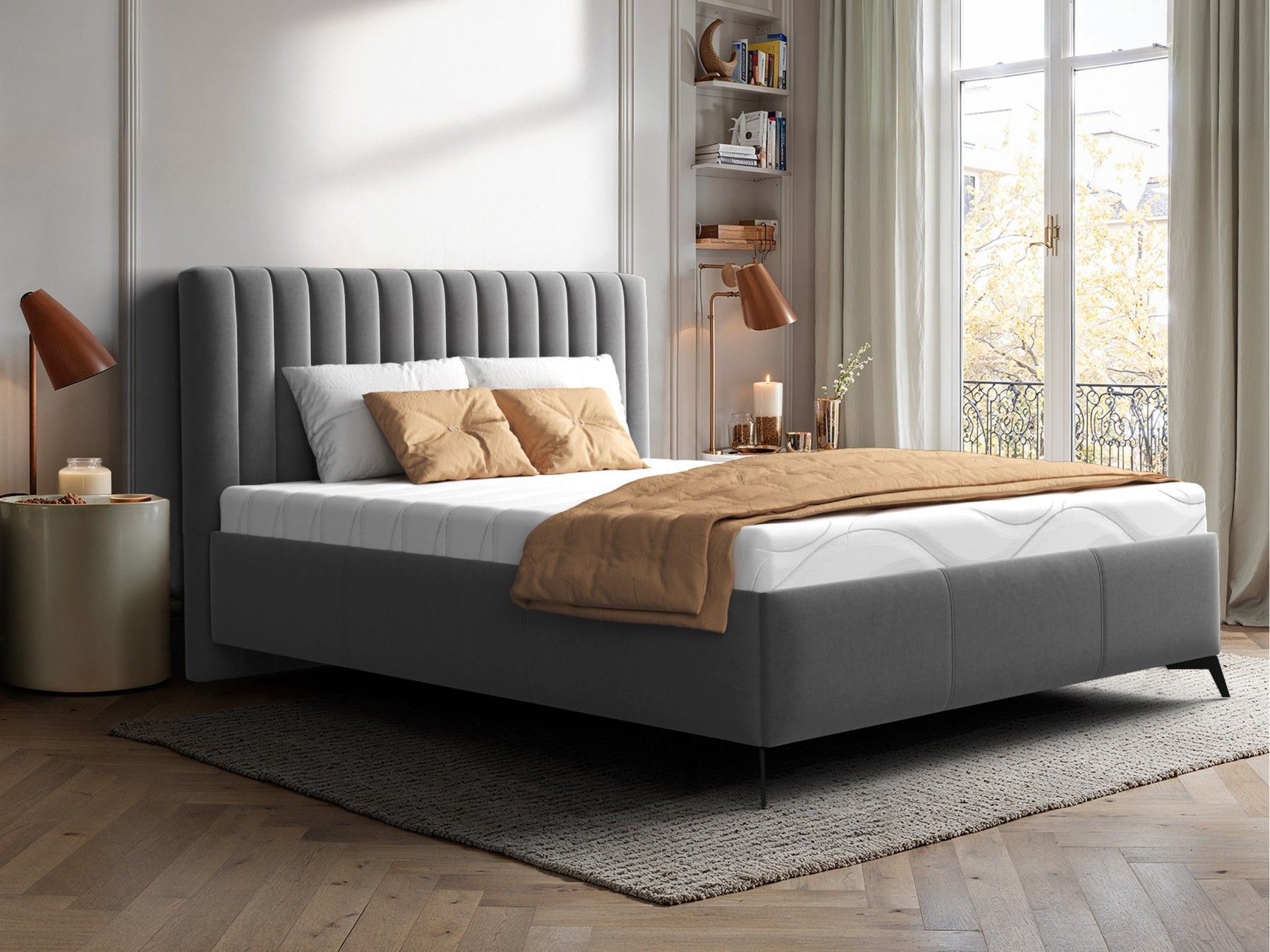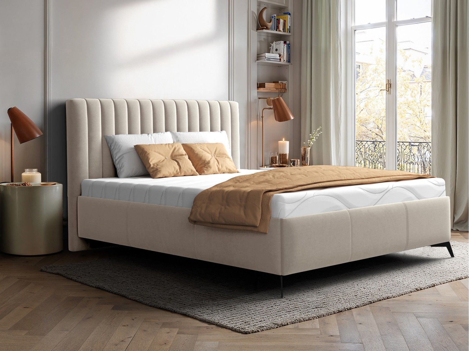 Polsterbett Morris mit Bettkasten Doppelbett mit Leistenlattenrost Bett M24
