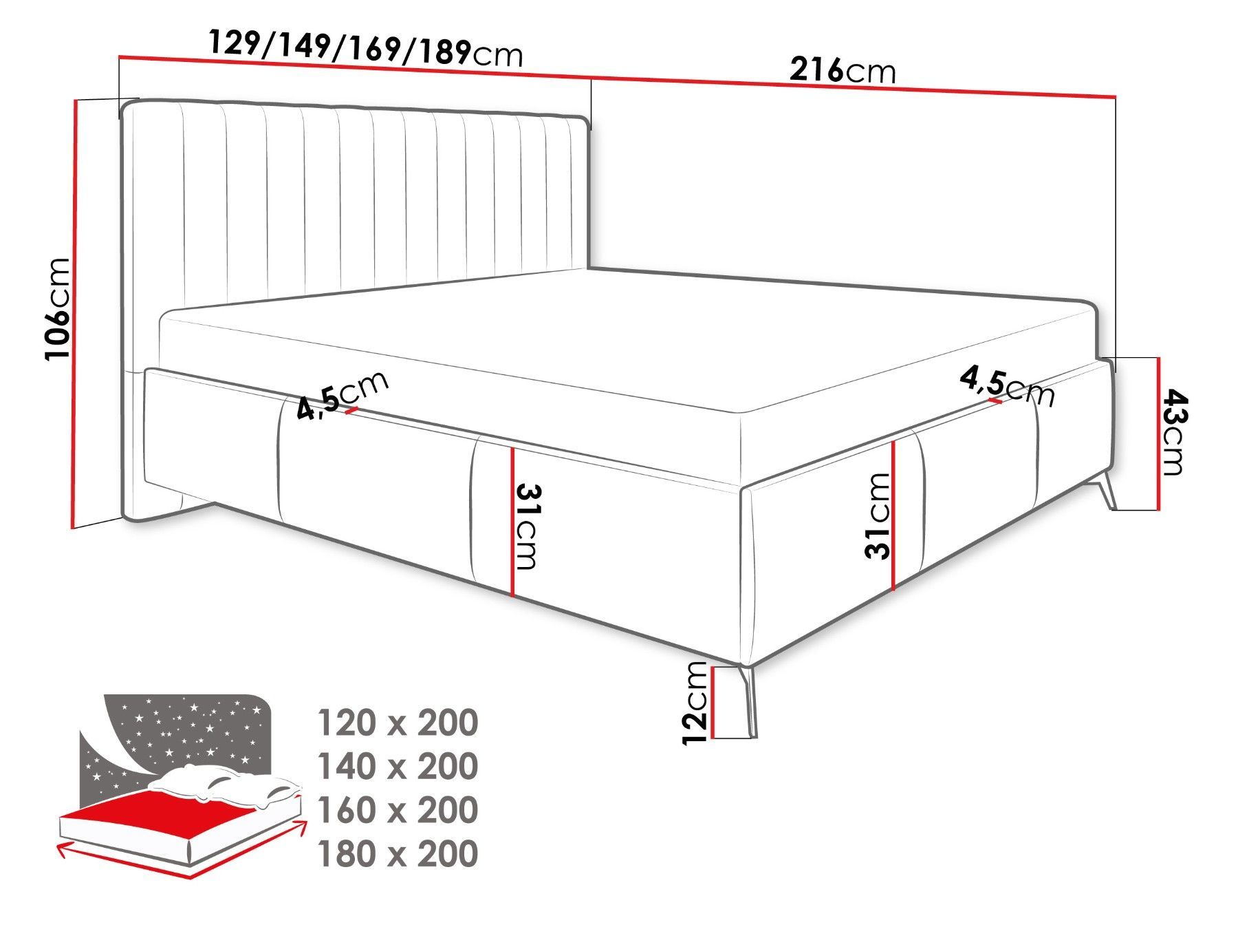 Kopfteilhöhe: