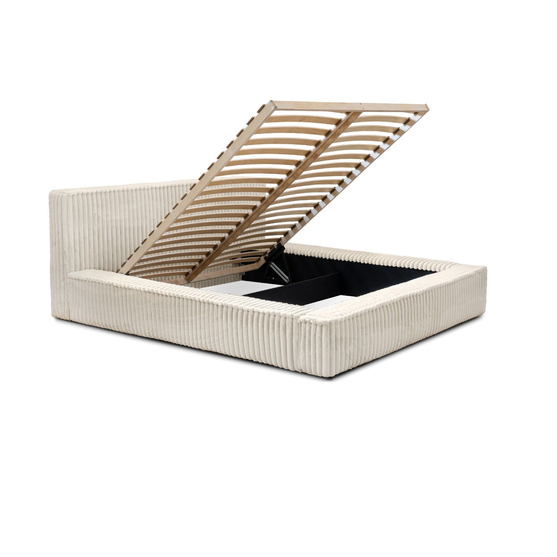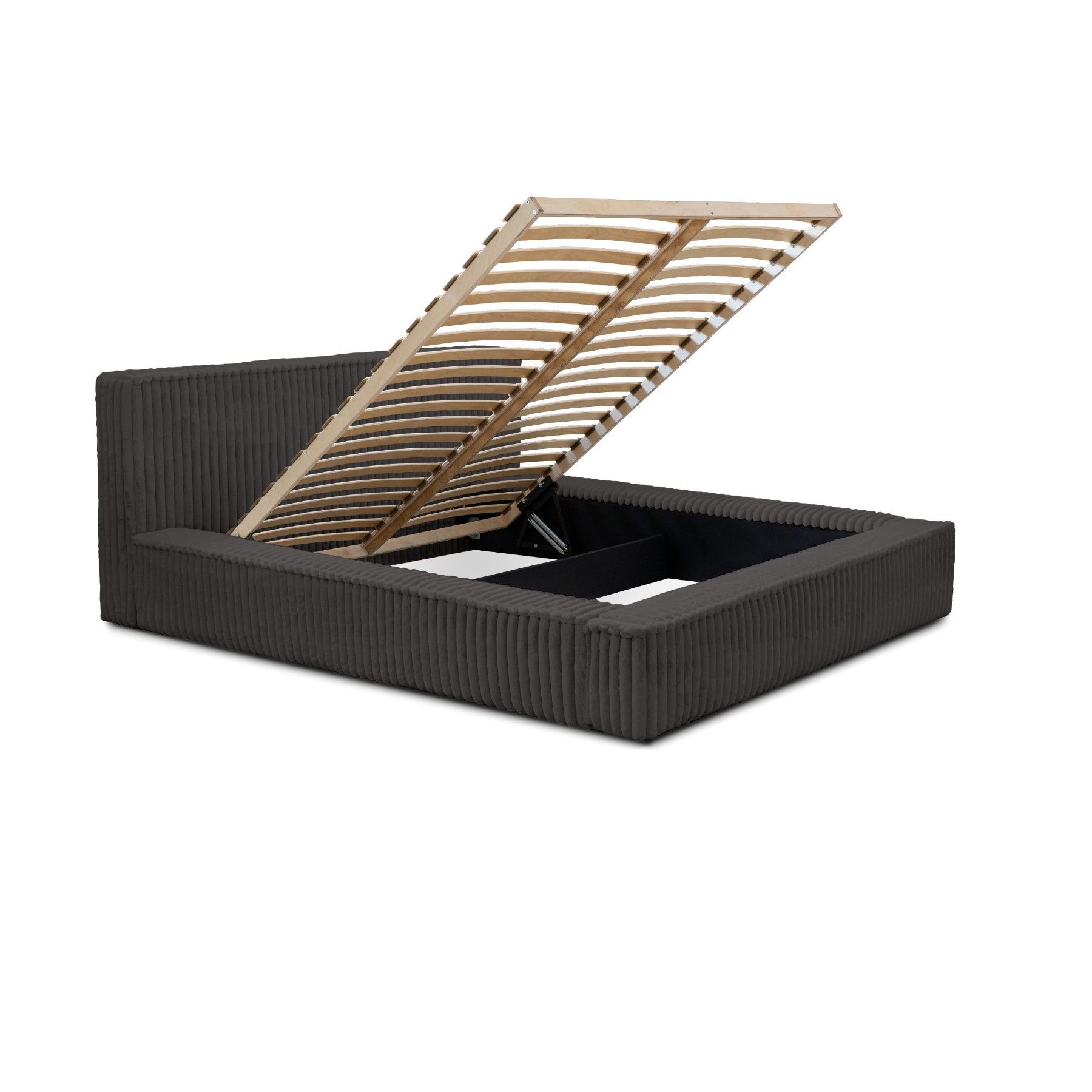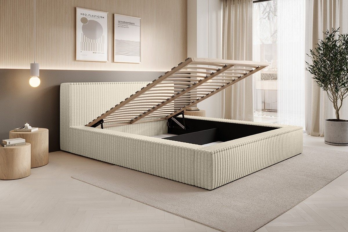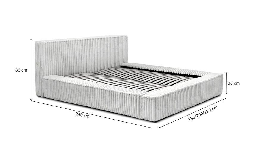 Gesamtabmessungen: Schlaffläche: 140x200/ 160x200/ 180x200 cm Breite: 180/ 200/ 220 cm Tiefe: 240 cm Rückenlehne: 86 cm Betthöhe ohne Matratze: 36 cm 1x Bettwäschebehälter Schlaffunktion Automatik auf Federn zum einfachen Öffnen des Behälters Modell in vielen verschiedenen Farben erhältlich Ohne Matratze! Dies kann Gegenaufpreis gekauft werden Matratze: Bonnelfedern Härte H3 Lattenrost: JA Bettwäschebehälter: JA