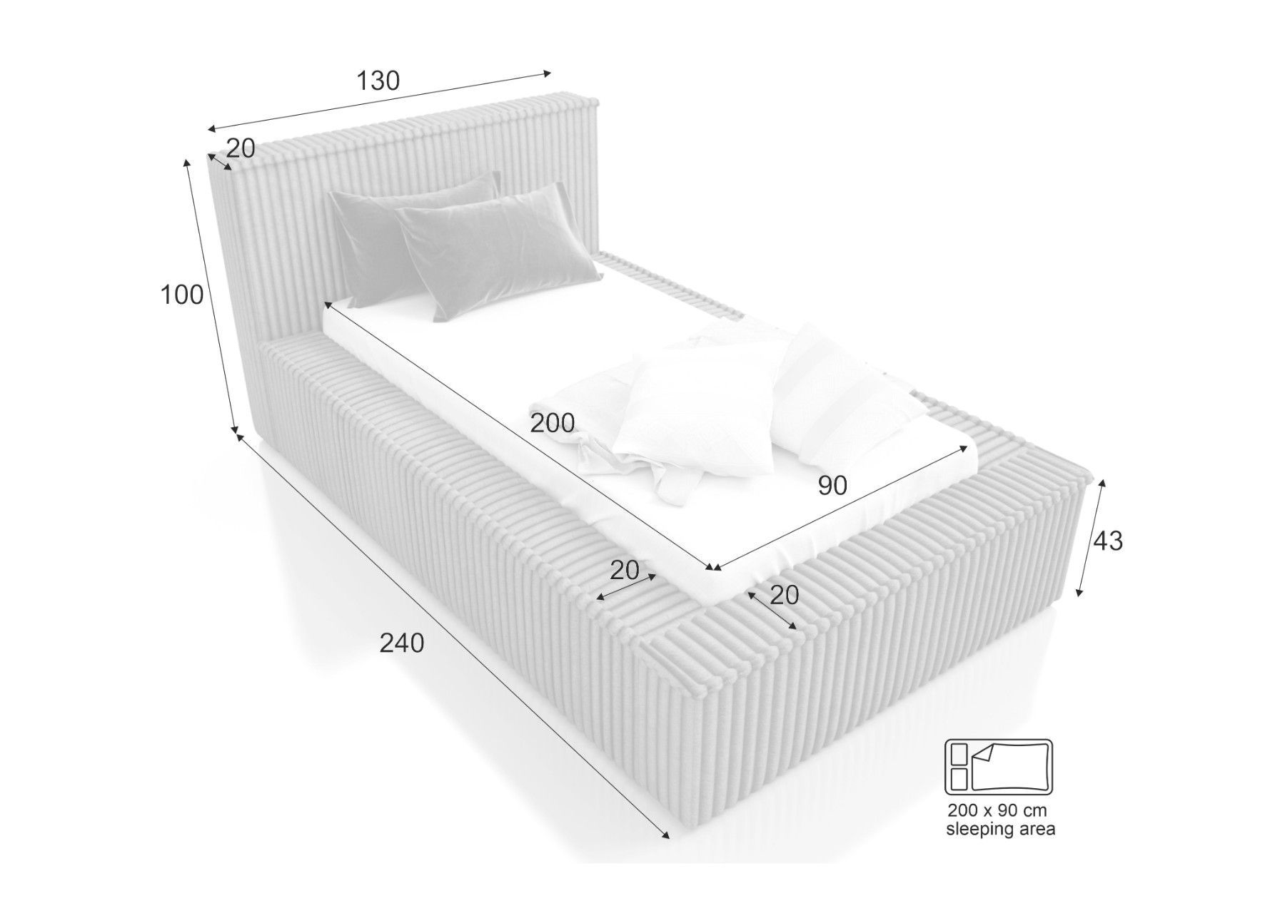 Polsterbett RIO - OM mit Bettkasten und Lattenrost