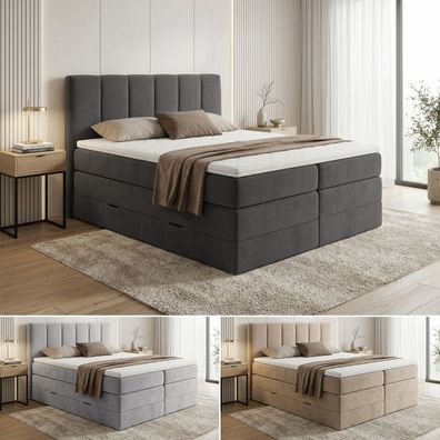 Boxspringbett STAR XL mit Stauraum, 2 Bettkästen und Topper, Doppelbett, Polsterbett