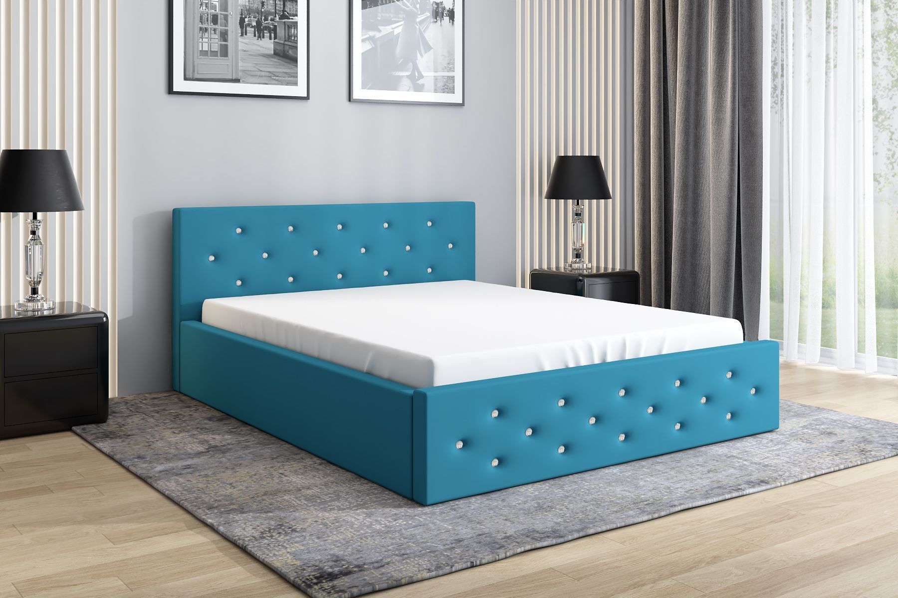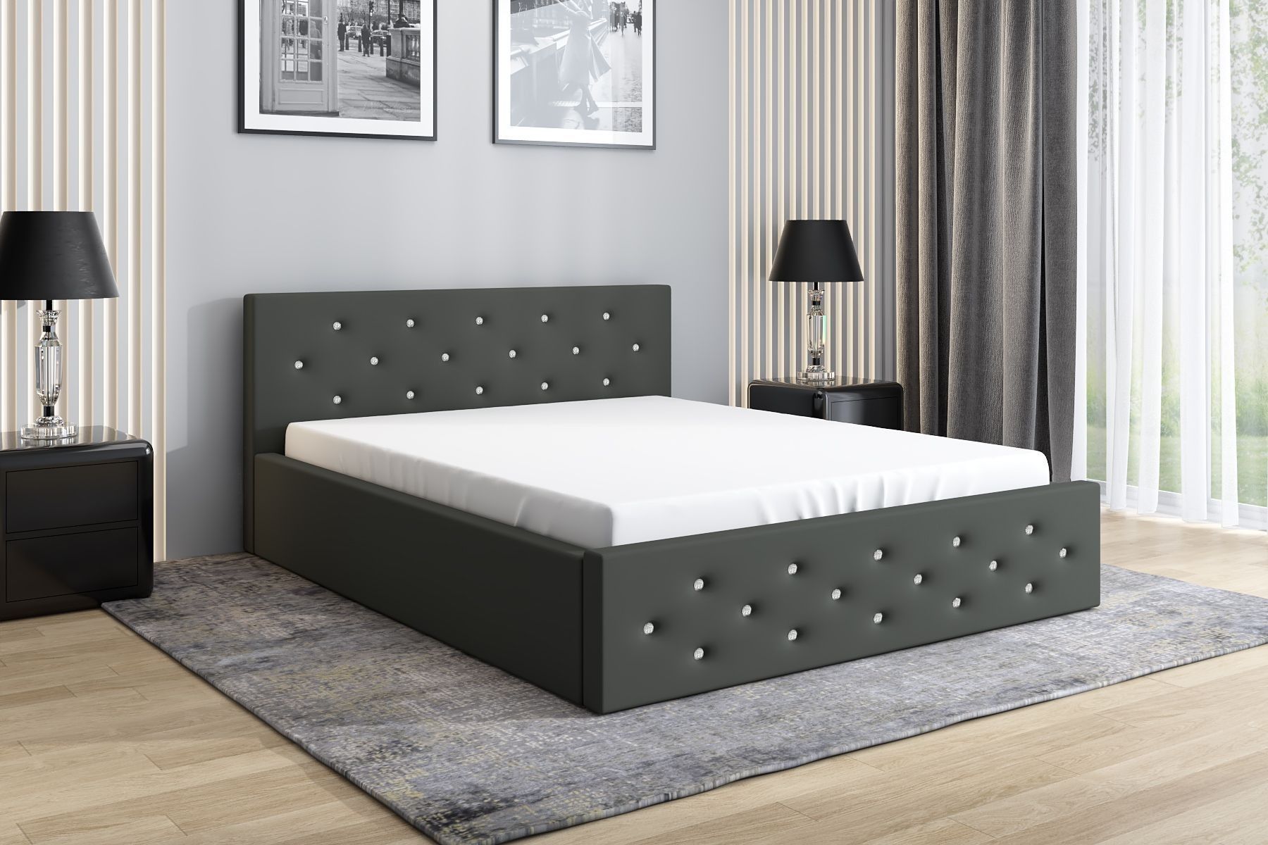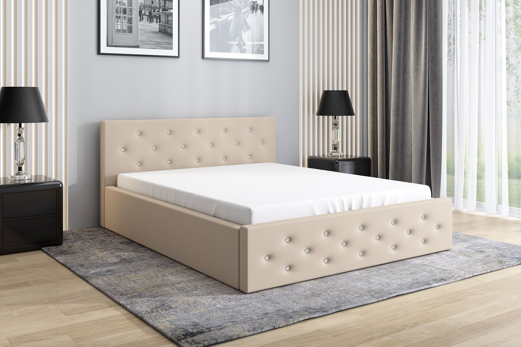 Polsterbett VALI-OM mit Bettkasten und Lattenrost