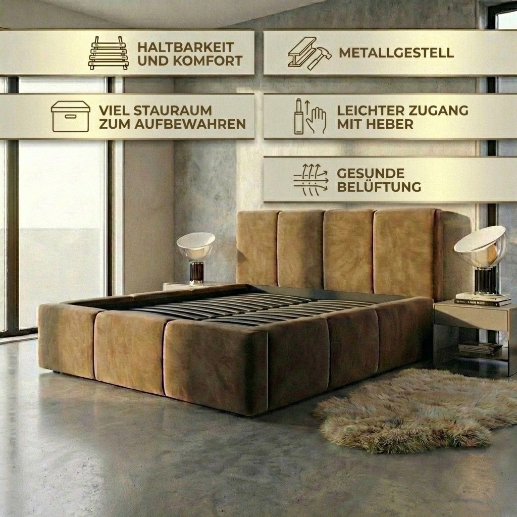 Polsterbett VEROM-OM mit Bettkasten und Lattenrost