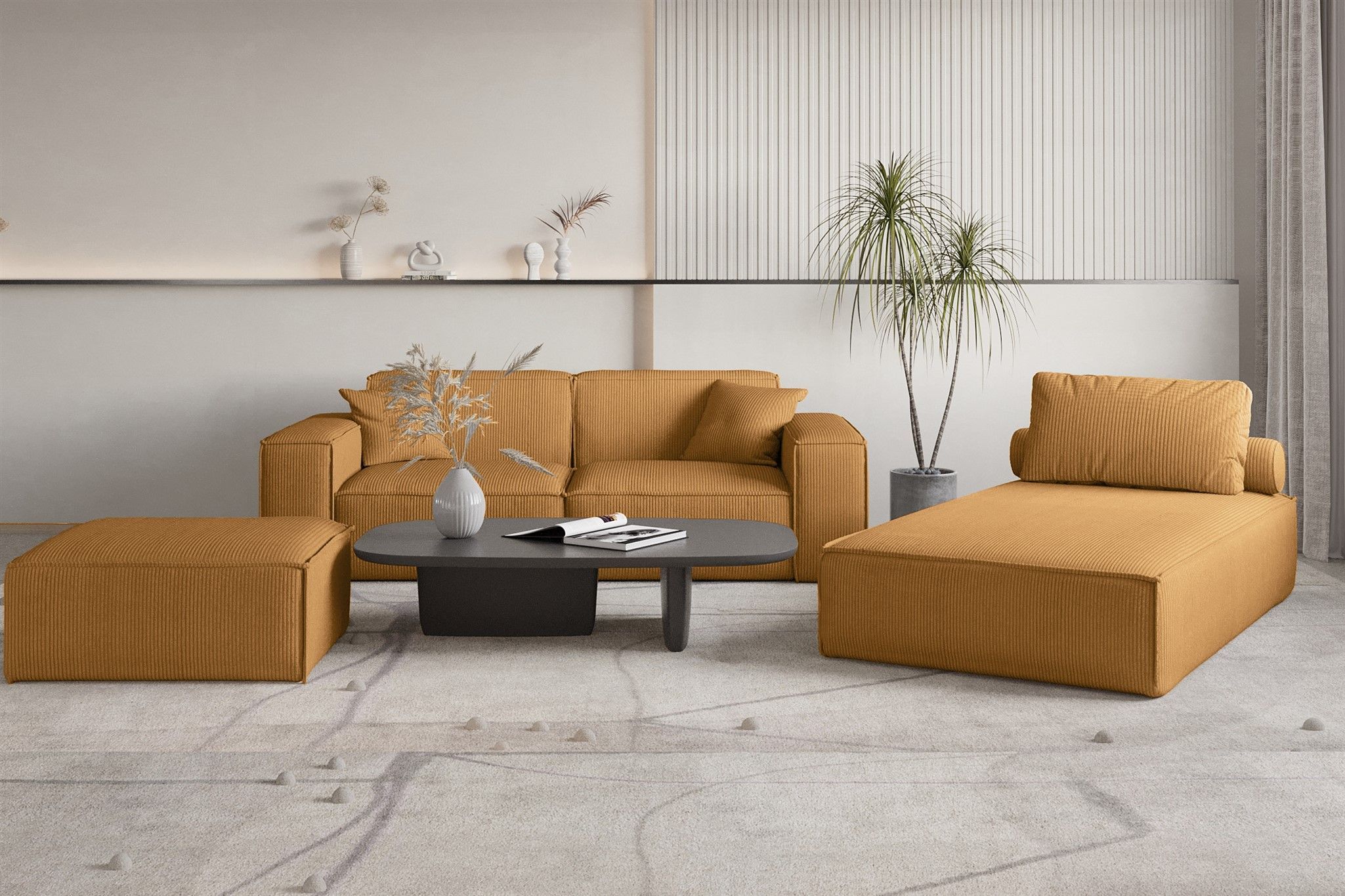 Polsterhocker Designerhocker CELES Premium 85x85 cm in Stoff Scala Senfgelb